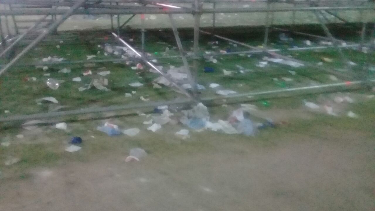 Un lector envió una imagen y el siguiente comentario: “Les muestro una foto luego de las fiestas patronales en Pocito. El polideportivo quedó regado de mugre que dejó la gente”.
