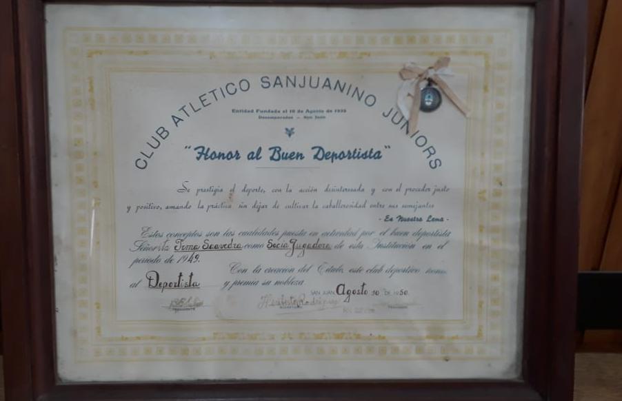"Mi madre siempre nos decía que los mejores años de su vida fueron ahí, en Sanjuanino. En cada reunión familiar relataba con detalles cada momento vivido en el club. Por eso siempre nos decía que cuando muriera quería descansar para siempre en el club", comenta emocionada Zulma, radicada en la localidad bonaerense de San Isidro, quien agrega que conservan como un tesoro familiar el diploma que le entregaron a su madre en 1949 como "deportista de honor", además del carnet de socia de Irma y distintas medallas que su madre cuidaba como oro y que había recibido en la década del ´50.
