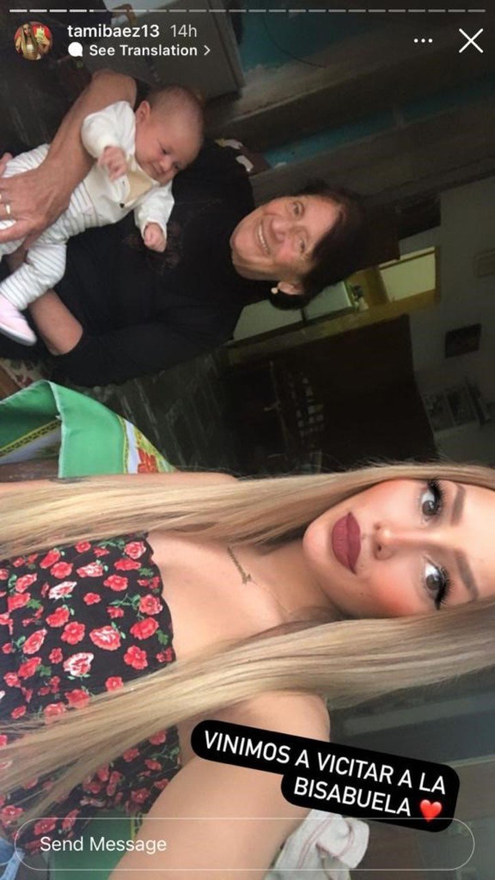 Todo comenzó cuando la joven compartió una foto de su pequeña hija y la frase "vinimos a vicitar (así, con "c" en vez de con "s") a la bisabuela" junto una foto de ella, Jamaica y la mujer en cuestión.