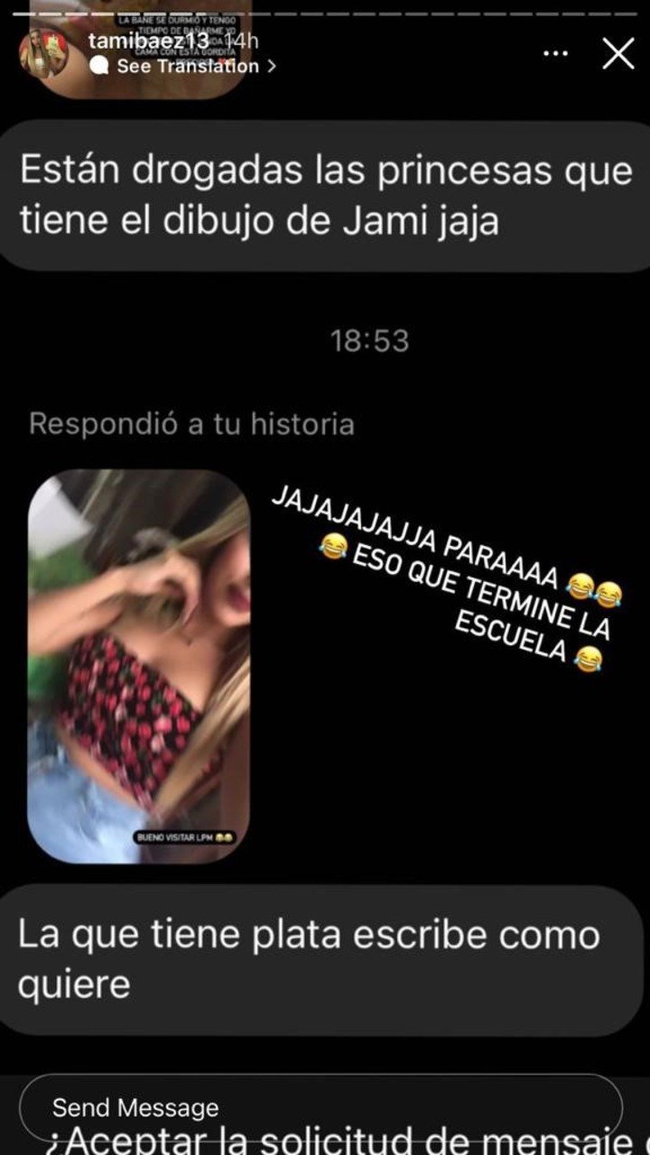 A los pocos minutos, los usuarios se dieron cuenta del error de ortografía y comenzaron a enviarle mensajes que, lejos de tomarlos como una agresión, Tamara compartió. "La que tiene plata escribe como quiere", le escribió uno, a lo que ella respondió, entre risas: "Jajaja, pará, eso que terminé la escuela".