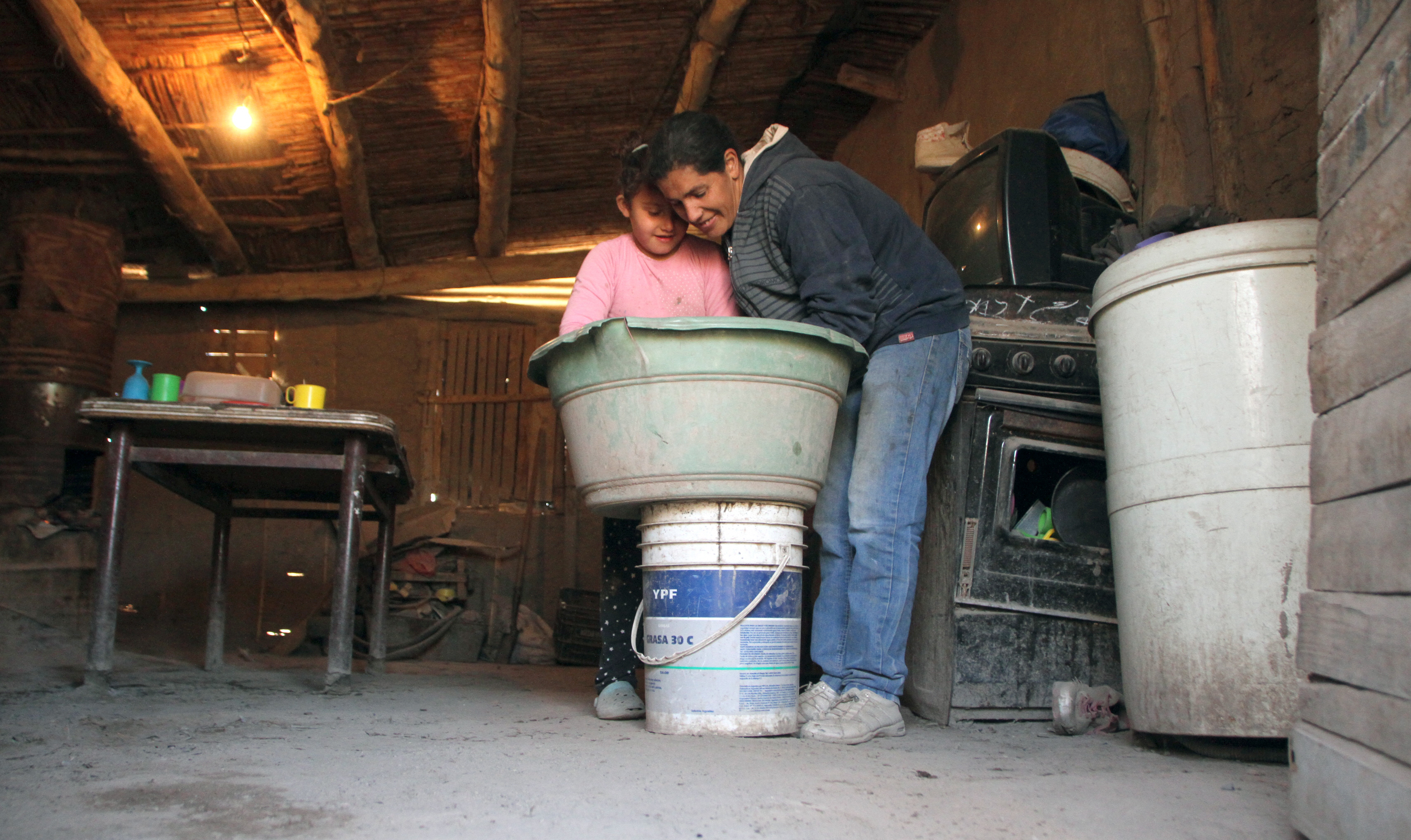 Un pueblo sin agua. Los vecinos se las ingenian para sobrevivir con un poco de agua. Hay días que no tienen ni para bañar a los chicos.