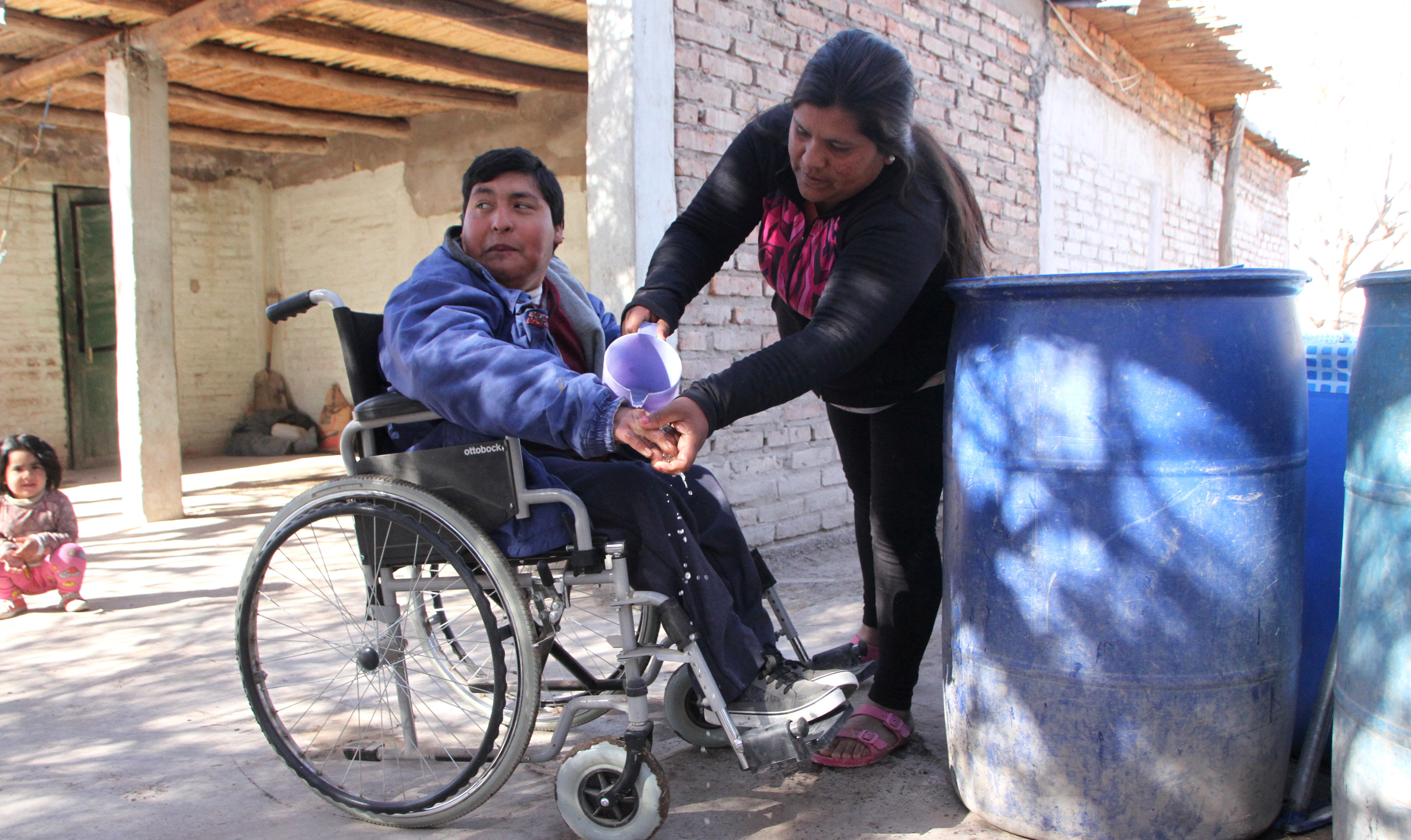 mental y motora y eso hace que se movilice en silla de ruedas. "Cuando tenemos que bañar a Jesús -su hermano- gastamos muchísima agua porque tardamos mucho. Es muy difícil vivir sin agua en las cañerías", agregó la mujer.