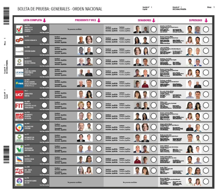 El orden de cada partido o frente electoral en la boleta quedará definido en relación al resultado de la elección primaria, correspondiendo el primer lugar a la agrupación política más votada en la categoría diputados nacionales y los ulteriores lugares de acuerdo a la cantidad de votos obtenidos por cada uno de ellas en la misma categoría.