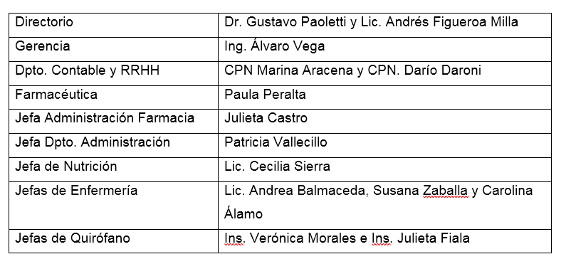 Sanatorio San Juan cuenta con una planta de 68 trabajadores, de los cuales 45 son mujeres, representando un 66,18%. El 71,43% de los cargos jerárquicos son ocupados por mujeres, como se puede ver en el siguiente cuadro: