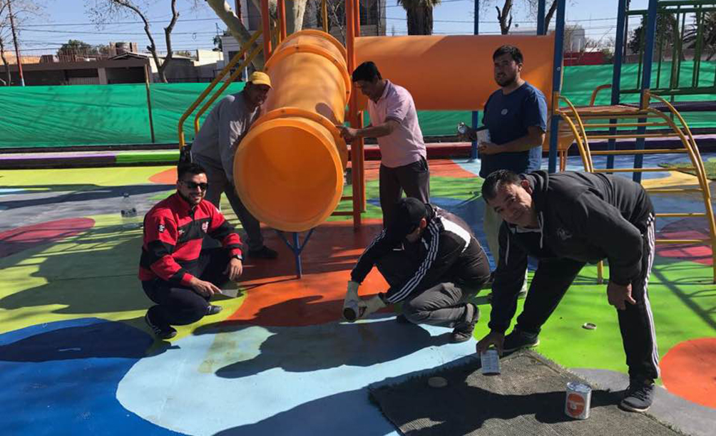 La plaza principal de Caucete comenzó a mostrar su nueva imagen. Los empleados municipales terminaron la construcción de uno de los nuevos sectores destinados a la diversión de los chicos que contará con nuevos juegos, parte de los cuales ya fueron instalados.