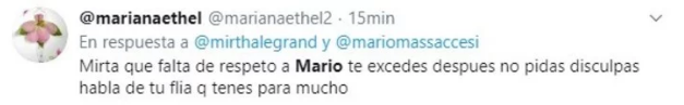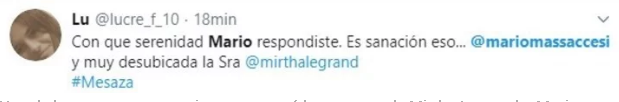 "Alguien me explica por qué la señora no es un poco más sutil para hablar…", "Mirtha qué falta de respeto a Mario te excedés, después no pidas disculpas…", "Admiro la entereza de Mario Massaccesi. Y si no quiere contar, bien por él".