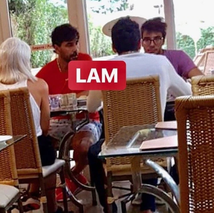 En la imagen, el actor ex Dulce Amor viste traje de baño y remera roja, y está sentado frente a su mujer (de espaldas a la foto); a su lado, sus dos hijos. Los cuatro están en un bar. Se presume que habrían pasado Navidad y Año Nuevo juntos. Además, el primo de Darthes vive en Brasil; una versión indica que está trabajando en el bar que su familiar posee en San Pablo.
