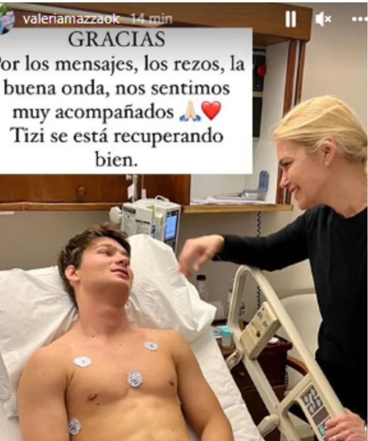 Durante su relato, Gravier contó que junto a Valeria estuvieron al lado de Tiziano desde que recibieron la noticia a las 5 de la mañana del domingo hasta las primeras horas de la tarde del miércoles cuando el joven salió de la operación. Y al poco tiempo, la modelo publicó una fotografía junto a su hijo desde el interior de la habitación. “Gracias. Por los mensajes, los rezos, la buena onda. Nos sentimos muy acompañados. Tizi se está recuperando bien”, escribió Valeria junto a un emoji de corazón y otro de las manos juntas en forma de rezo. En la imagen, se la ve sonriente, mirando la evolución de su hijo que descansa en la habitación del hotel luego de la operación.