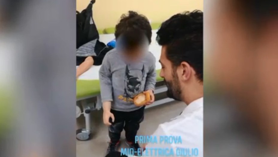 En las imágenes se puede apreciar al pequeño Guilio agarrar un objeto por primera vez, cuando el médico le inserta el brazo biónico.