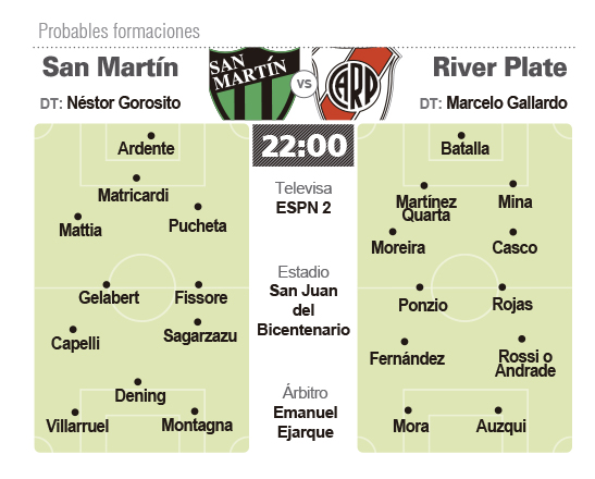 Sin ser un partido por los puntos, San Martín aprovechará el encuentro de esta noche ante River, a las 22 en Bicentenario, para jugarlo al máximo y saber realmente dónde está parado y cuáles serán sus reales intenciones para cuando se reanude el torneo de Primera División. En el marco de la Copa BBVA Francés San Juan, el conjunto Verdinegro disputará su séptimo juego de pretemporada (ganó 5 y cayó en 1) con una serie de variantes en cuanto a nombres y sistema que venía utilizando y que podrían ir definiendo cómo será el modelo 2017 de Gorosito.