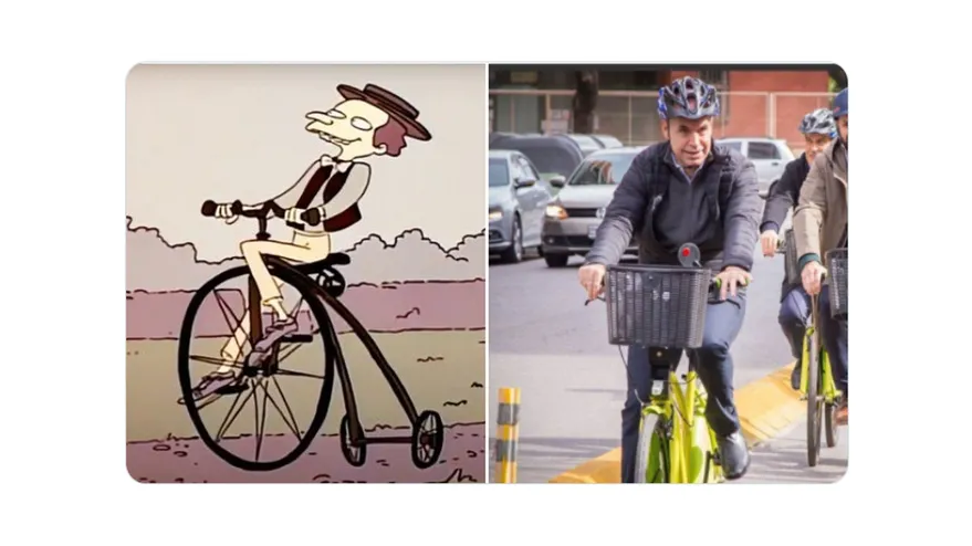 La imagen compartida por Rodríguez Larreta muestra -por un lado- al multimillonario en su oficina con un taladro en su mano junto a otra reconocida figura de la serie televisiva, siendo este Juan Topo. A su lado, una fotografía del político argentino sosteniendo la misma herramienta durante una visita a la Comuna 8.