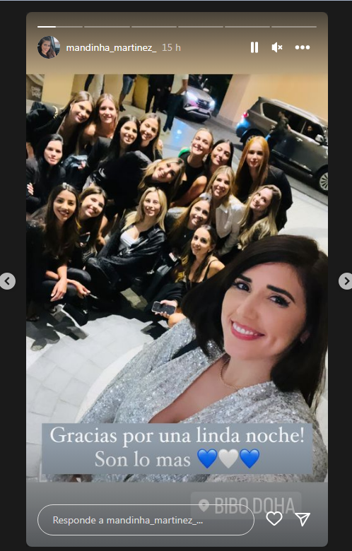 "Gracias por una linda noche, son lo más", escribió por ejemplo Mandinha Martínez, la esposa del Dibu, mientras que varias de las otras mujeres compartieron las fotos en sus cuentas de Instagram con corazones celestes y blancos o la bandera de Argentina.