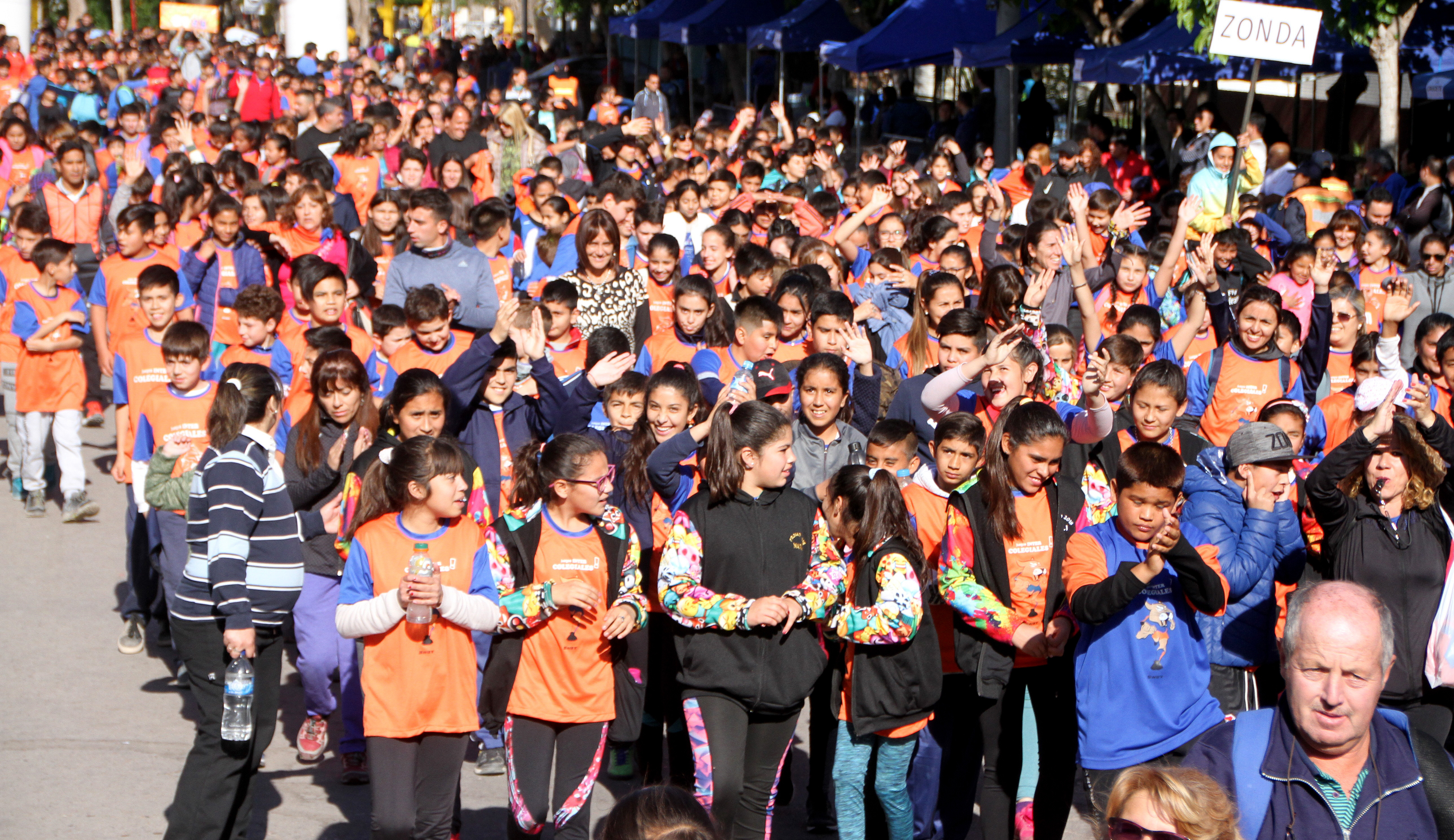 El color naranja encandilaba. Los miles y miles de chicos trataban de no separarse de sus profes. Mientras los alumnos de la Primaria eran acomodados desde el "Monumento al Deporte", los de la Secundaria también se formaban en las calles internas del Parque de Mayo y del otro lado más de un centenar de colectivos de larga distancia habían colmado el ex Estadio Abierto. Así, como una verdadera revolución, se abrieron los "Juegos Intercolegiales 2018" en su instancia Provincial que tuvo lugar en los alrededores del Estadio "Aldo Cantoni".