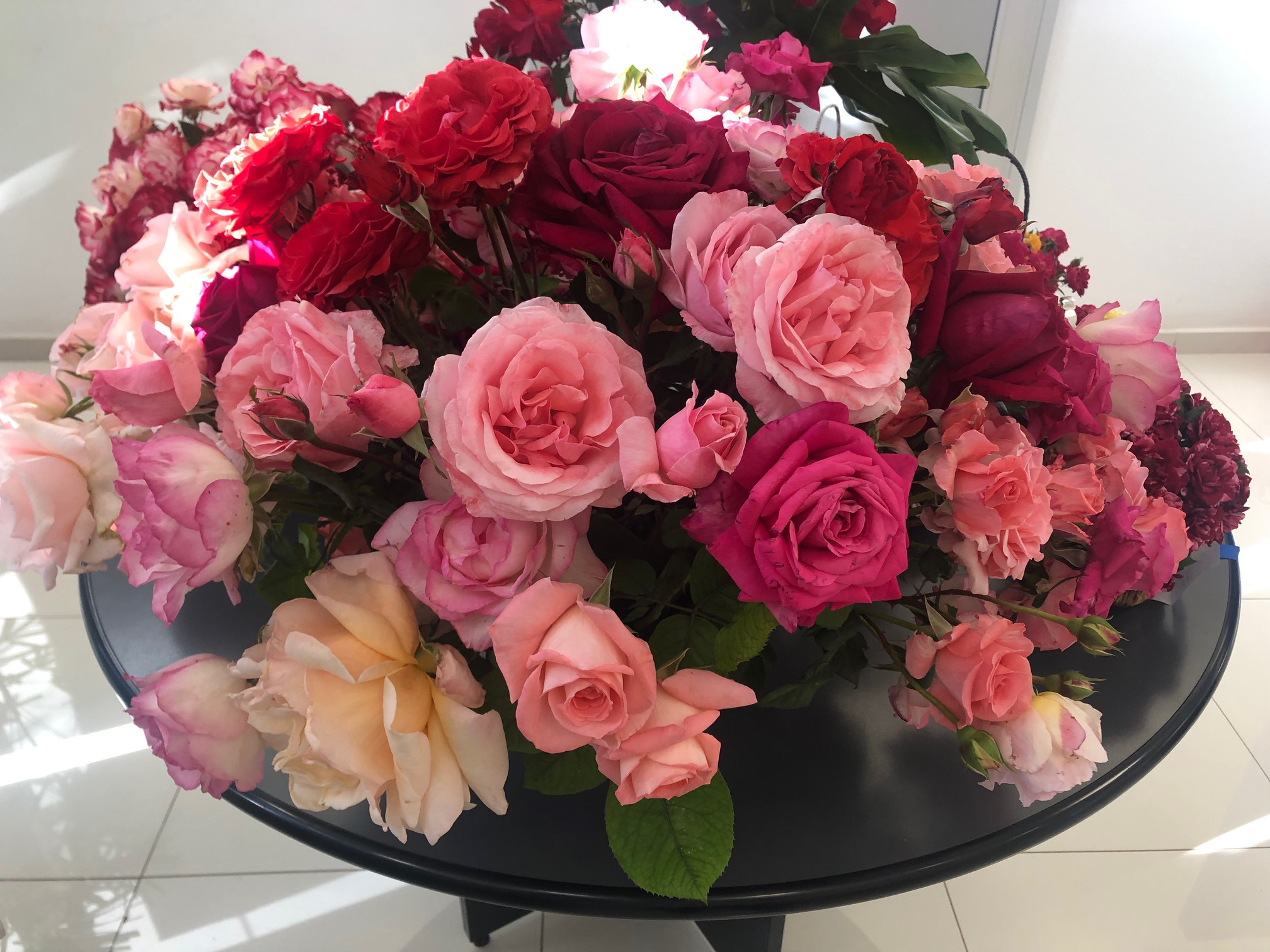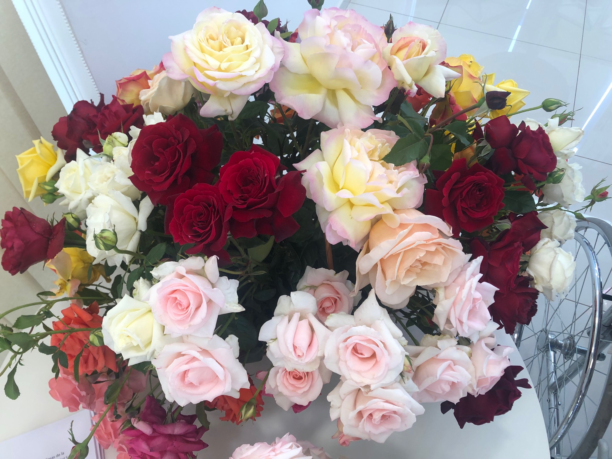 En un gran mesón con las divisiones hechas se presentan las distintas variedades de rosas: R. Inglesas, R. Híbridas de Té, R. HT Trepadoras, R. Floribundas, R. Grandinfloras y R. Miniaturas.