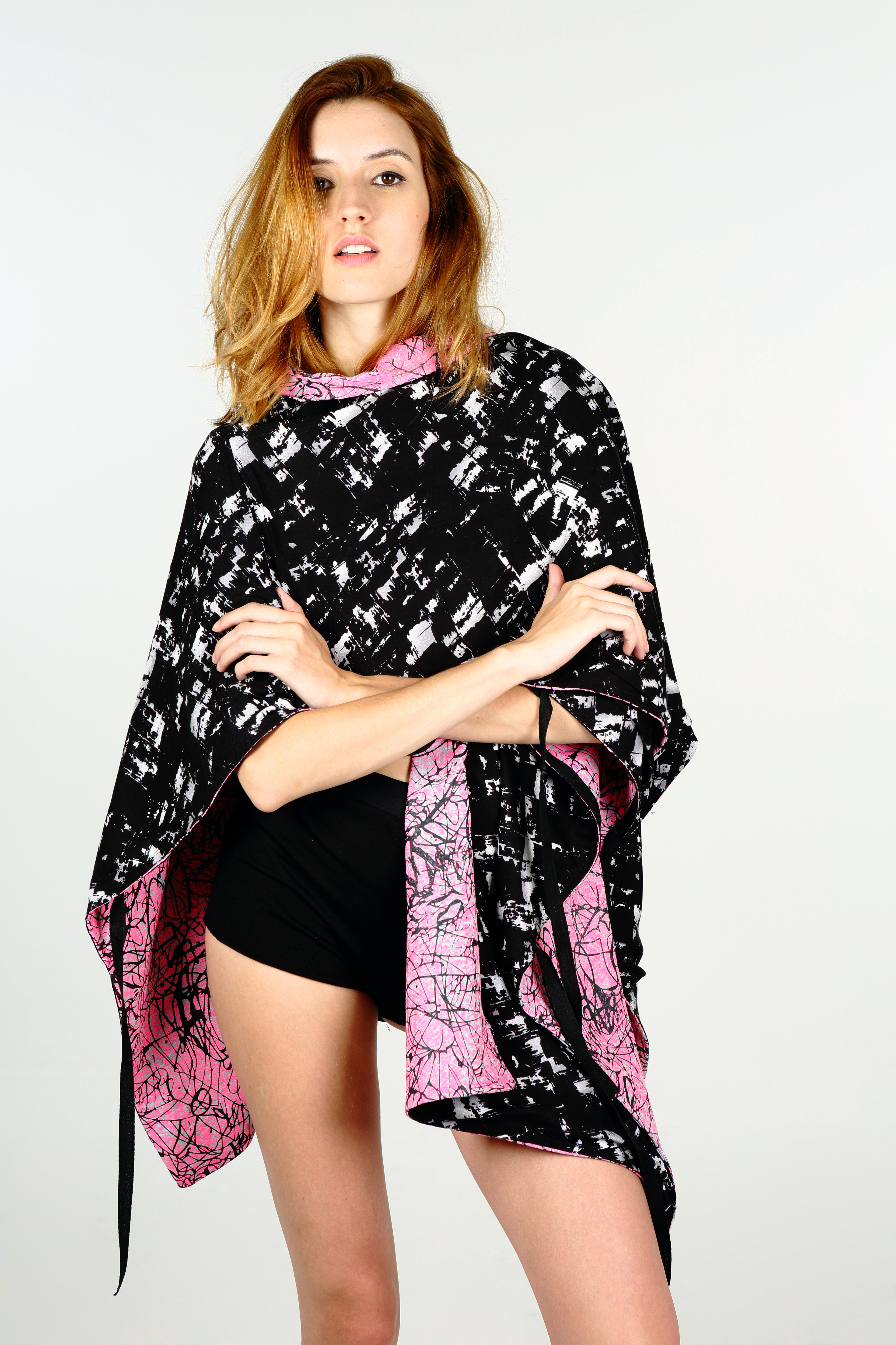 Tres maniquíes fueron el soporte para los inicios de la moldería que le permitieron trazar su sueño. La primera colección, la fundacional, fue una de sastrería o artesanal, como le gusta llamarla a la diseñadora. "Eran ponchos semiexclusivos fusionados con tipologías y textiles de sastrería, combinados con tejidos artesanales. Resultaron ponchos, sobretodo-ponchos, tapados-ponchos, ruanas-poncho, con terminaciones, cuellos y otros detalles de sastrería. Esos ponchos se volaron y me dieron el ímpetu de seguir creando. Luego siguieron la línea urbana que fusiona el poncho con la tipología del ready-to-wear (listo para usar), que son prendas de uso casual o diario, versátiles, para usar de día o de noche según te pongas unos stiletos o unas zapatillas. También hice una línea deportiva, más tipo buzos o suéter ponchos que son gigantes o tienen capuchas, en base a géneros, avios (estos son los cierres, botones, cintas o tiras que permiten ajustar, cerrar o abrir el abrigo) y terminaciones propias de lo deportivo. Más recientemente hice la de playa, la de niños (que es la única que tiene talles del 2 al 12 y son ponchitos de abrigo y salidas de baño) y la línea corporativa a pedido de las marcas que se coparon con los ponchos para sus promociones", detalla Majo, que tiene un amplio abanico de textiles a su gusto para hacer los ponchos: desde lanas, lanillas, algodones, polar, toalla, paños, hasta telas tejidas al telar. También tiene telas estampadas que ella misma diseña, como además bordados y serigrafiados artesanales. Por ejemplo la edición de ponchos de verano para niños estampó telas en batik pero también, inspirada en la flora y fauna de San Juan con dibujos de guanacos, retortuños, la tierra, el río, montañas, jarilla y el sol.
