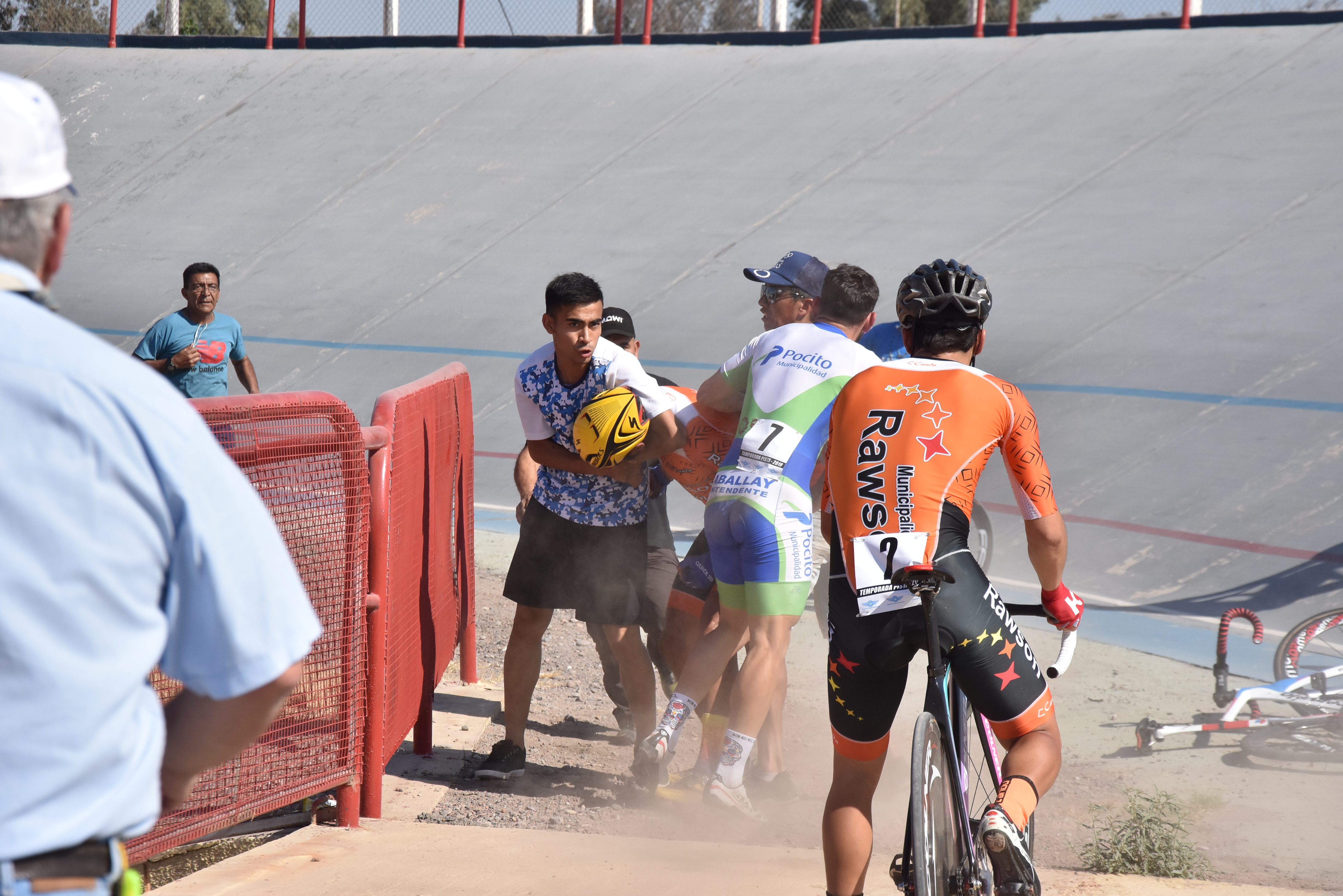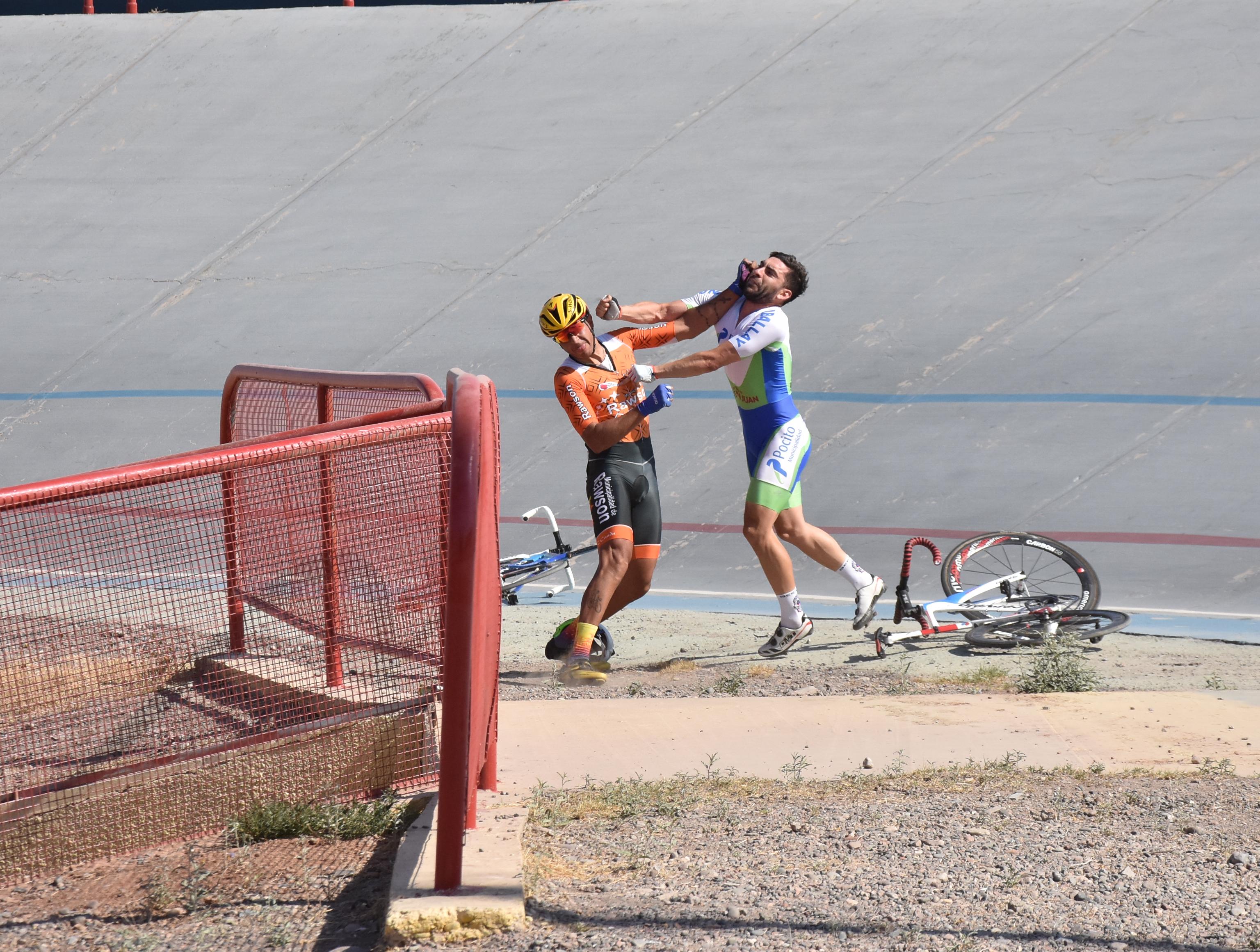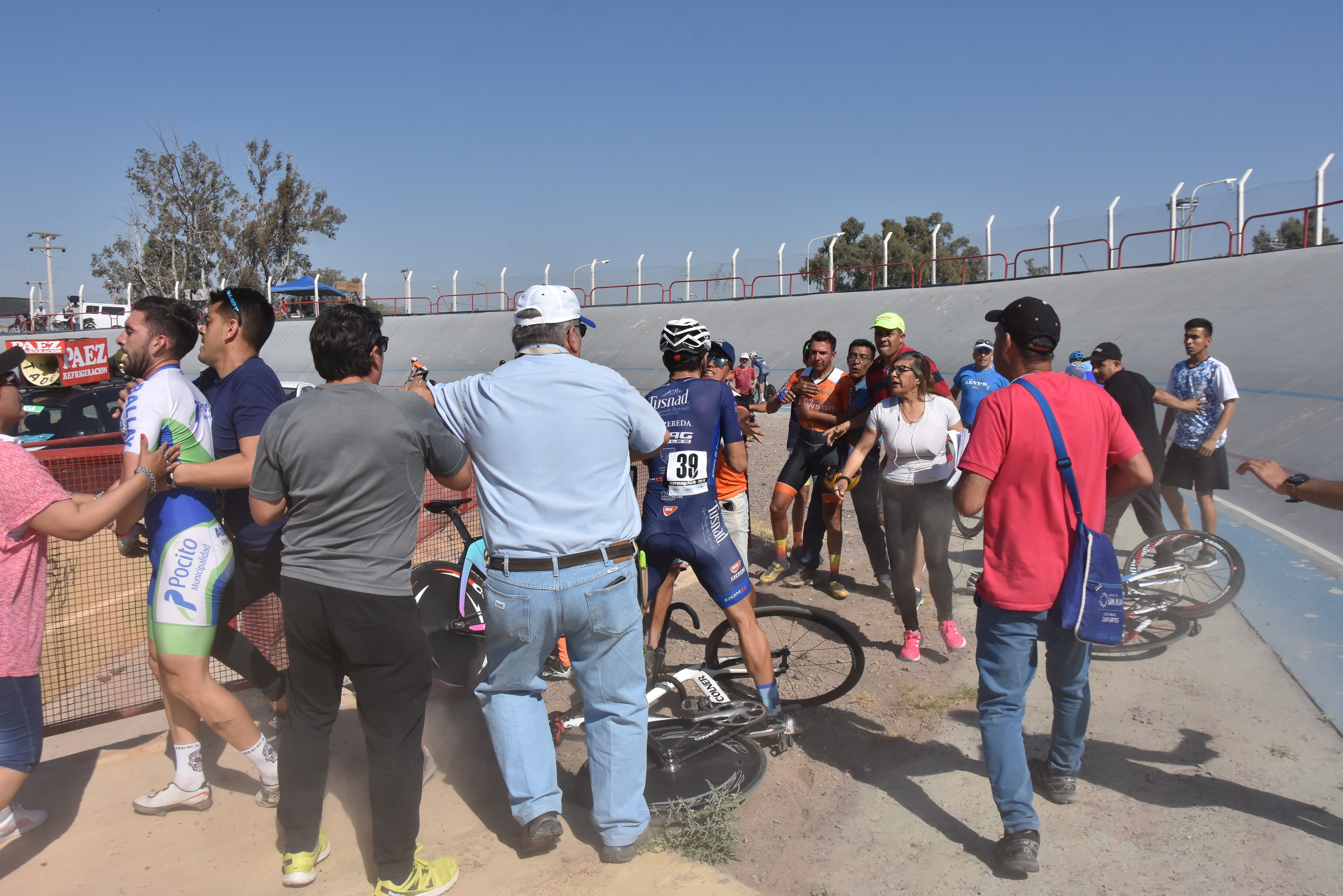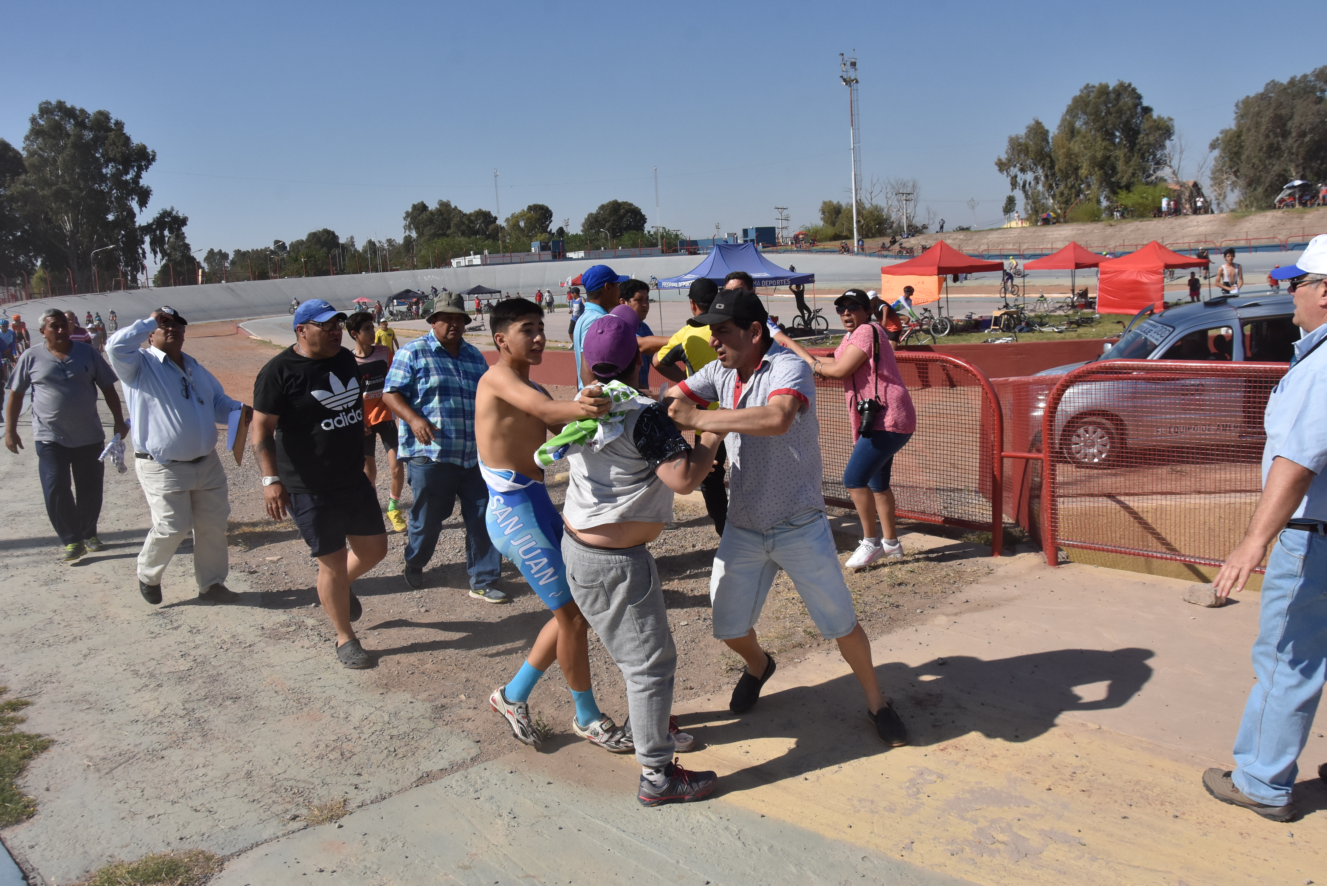 Diego Tivani y Duilio Ramos se trenzaron a golpes, generando un escándalo que incluyó a algunos personajes que nada tienen que hacer en la pista. Es más, un "espectador" le arrojó una piedra al pedalero de la Municipalidad de Pocito mientras peleaba con el de Rawson.