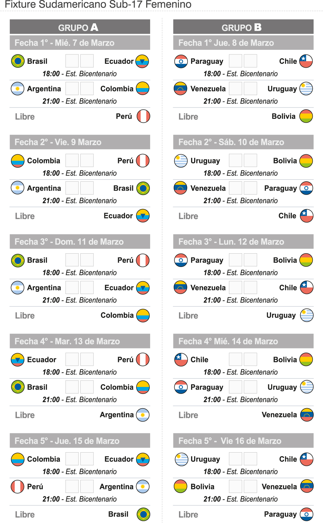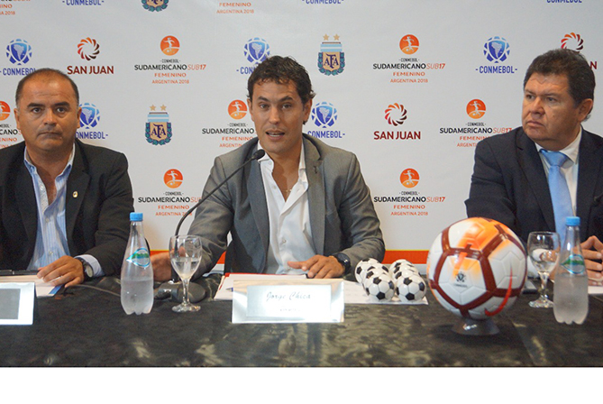 San Juan vuelve a ser escenario internacional de la mano del fútbol y ayer, desde la sala de prensa Dante Pantuso de la Secretaría de Deportes, comenzó a jugarse la 6ta edición del Torneo Sudamericano Sub-17 Femenino que clasificará a dos equipos para el Mundial de la categoría que se disputará en Uruguay. Con la presencia de Jorge Chica (secretario de Deportes) como anfitrión, los integrantes de Conmebol, Roger Bello y Andrea Ortiz; además de César Sosa (miembro del Comité Ejecutivo de AFA), se realizó el acto de presentación del certamen que comenzará el miércoles 7 y terminará el domingo 25, teniendo como sede principal el estadio San Juan del Bicentenario.