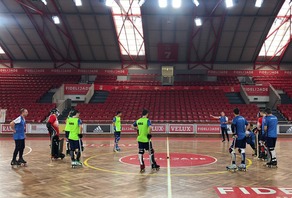 La Selección Argentina de hockey sobre patines tuvo ayer su primera práctica en suelo portugués y, aunque la actividad no fue plenamente intensa por el cansancio de algunos tras el largo viaje desde San Juan, sirvió muchísimo para ir conociendo el piso de la cancha del Benfica, lugar que será el búnker argentino hasta algunos días antes del Mundial que se jugará en Barcelona, España.
