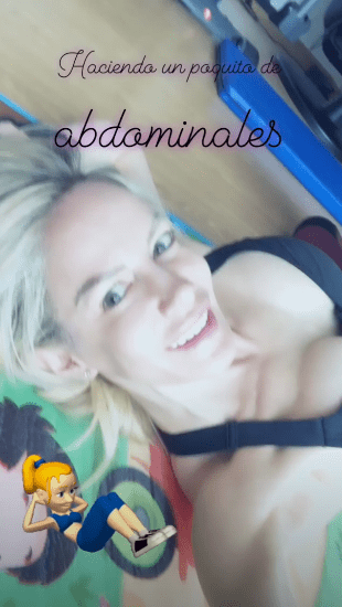 Este domingo, la ex de Martín Redrado compartió en sus "historias" de Instagram una selfie al natural y sin maquillaje en un descanso de su rutina de gimnasia: "Haciendo un poquito de abdominales", escribió.