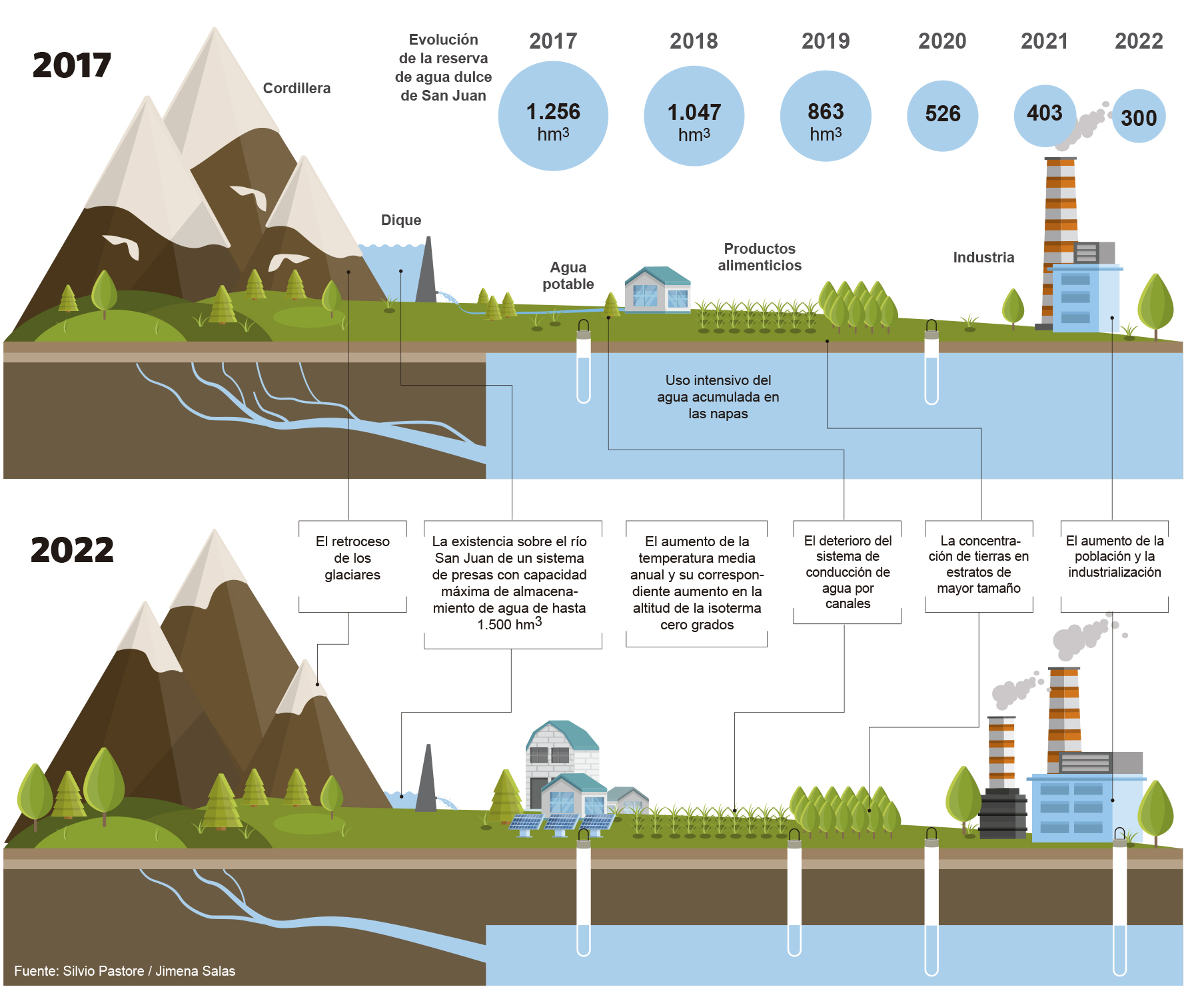 "Este fenómeno climático no es local, la región experimenta lo que podría llamarse una ‘Mega Sequía’, que cubre la diagonal árida sudamericana y la Cuenca Paranense, entre otras", explica Pastore, agregando: "Pero la provincia de San Juan es una de las provincias argentinas más impactada por este fenómeno y probablemente la más vulnerable -poder de adaptación-".