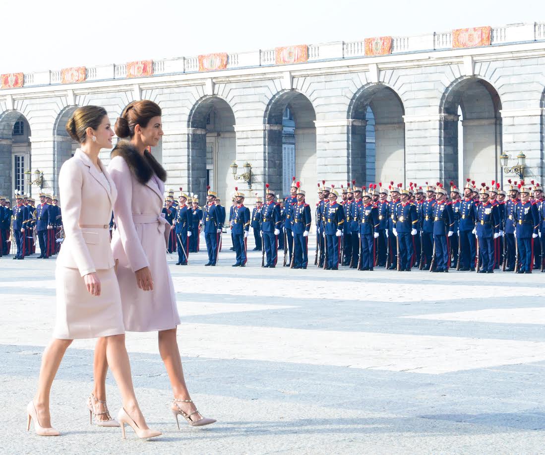 Letizia, por su parte, eligió un tailleur de dos piezas en rosa empolvado del español Felipe Varela, del mismo género que Awada, y zapatos de Prada. Además, al igual que Juliana, la reina española también se muestra siempre con creaciones de diseñadores españoles. Letizia se inclinó por un outfit que marca su estilo clásico, ya que los trajes de dos piezas, los smokings femeninos y faldas lápiz son claves en sus looks.