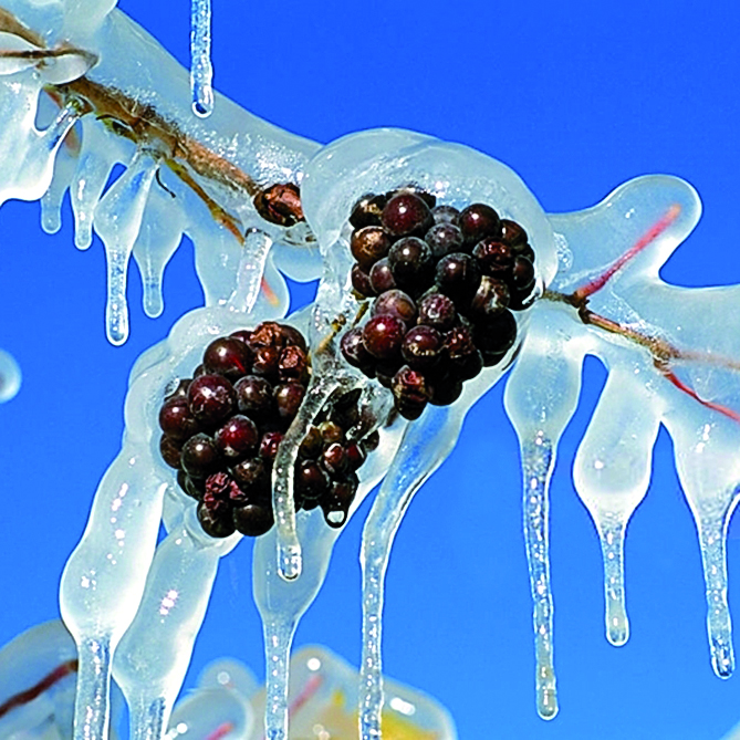 El vino de hielo es técnicamente posible porque, a dicha temperatura, lo que se hiela del grano es agua, y así puede extraerse un jugo muy concentrado de la uva.