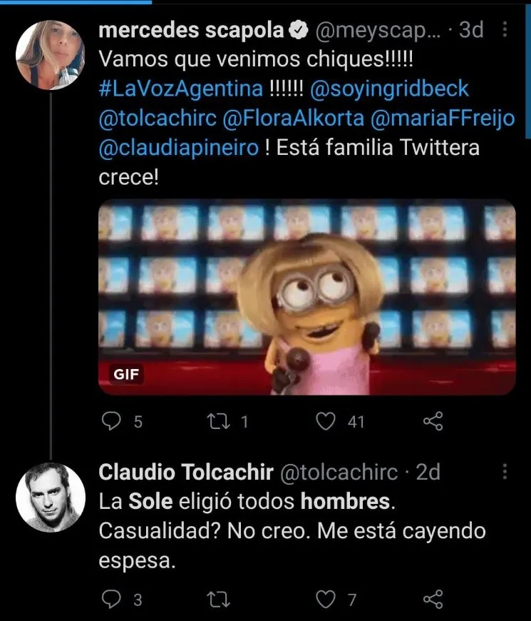 "¿La Sole tiene todos hombres?", preguntó una usuaria hace unos días. En la red social no todos fueron dudas, sino que algunos usuarios comenzaron a repetir: "El team Soledad son puros hombres cantando folclore".