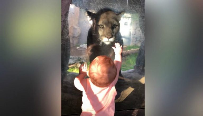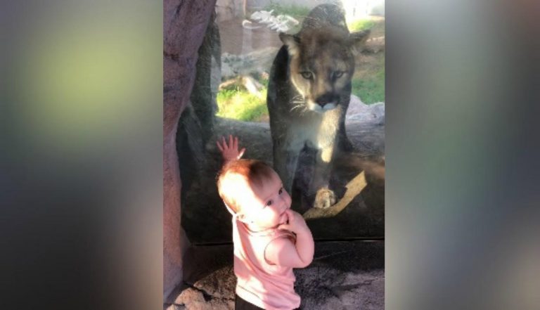 La familia estaba paseando por el lugar cuando Scarlette comenzó a golpear el vidrio de seguridad que protegía el hábitat de un puma. El ruido alertó al animal, que se acercó sigilosamente hasta que quedó cara a cara con la beba. Lejos de amedrentarse, la pequeña se mostró emocionada y trataba de acariciarlo a través del vidrio. Del otro lado, el animal abría la boca y no entendía qué era lo que le impedía llegar hasta su presa.