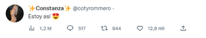 “Estoy así (emoji de enamorada)”, escribió la oriunda de la provincia de Corrientes, quien enseguida recibió una catarata de mensajes en su contra por ser “egoísta”, aunque otros se pusieron igual que ella porque finalmente se reencontraría con su amor.