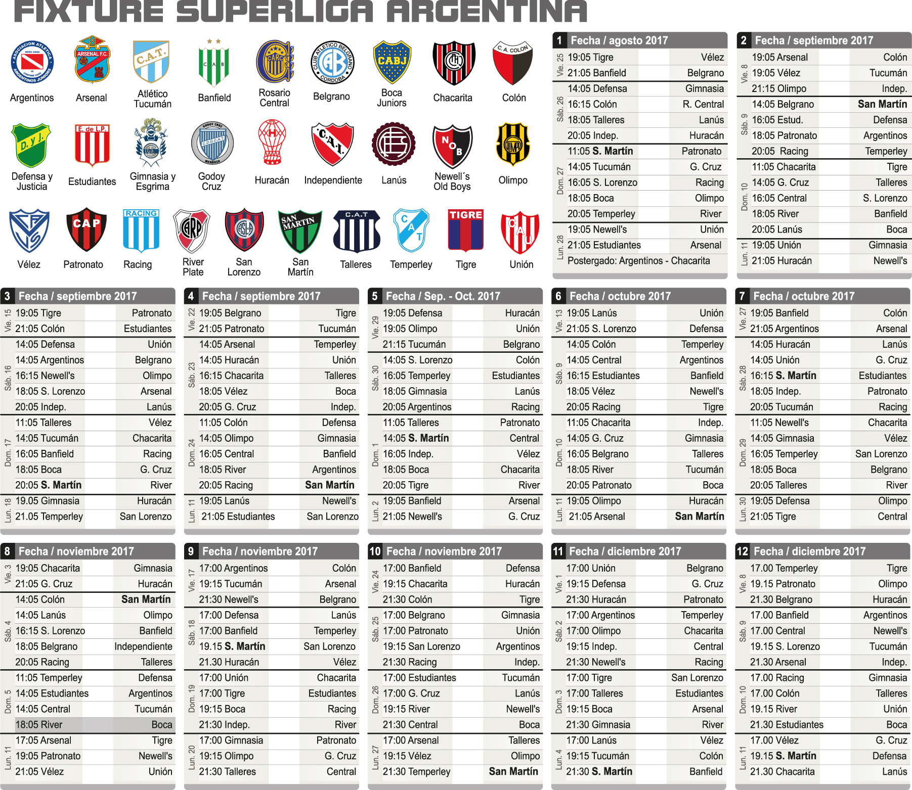 De hecho esto forzó el diseño de un organigrama para todo este último semestre del año, que abarca las 12 primeras fechas del campeonato, con días y horarios. Algo que con el torneo dependiendo de AFA no se hacía. Incluso aseguran que el fixture será respetado a rajatabla, lo que reflejaría otro notorio cambio para el fútbol mayor.