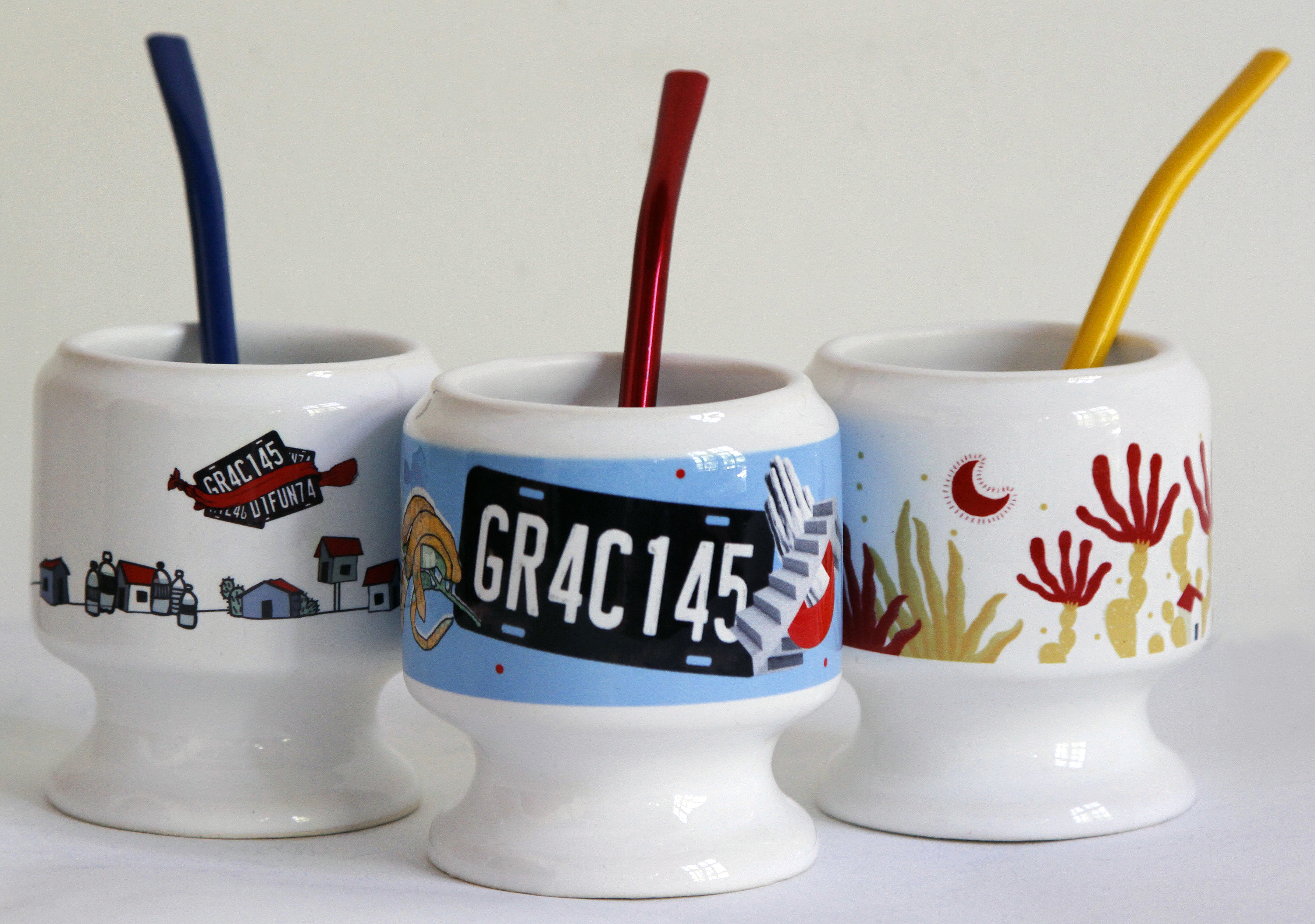 Entonces llegó la hora de concretarlo. Se “asociaron” con 10 emprendedores locales que siguieron al pie de la letra cada uno de los diseños para estas cien piezas diferentes, entre las que hay mochilas, remeras sublimadas y serigrafiadas, bolsos materos con sus equipos (latas, mates y bombillas), mantelitos y lonas, tazas de cerámica, jarros térmicos, estuches, pañuelos, libretas, cuadernos, postales y láminas, pines, espejos, abridores, llaveros, imanes, joyas (dijes de plata con resina, acrílicos), etc.
