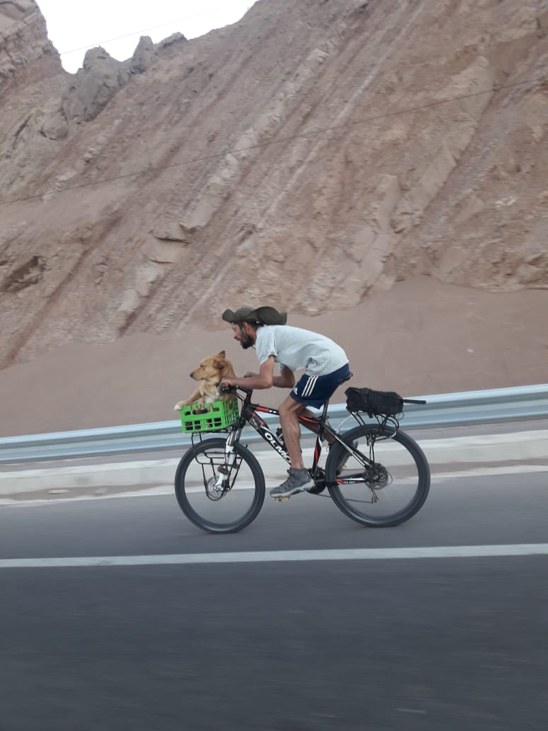 Según sus explicaciones, el chico que aparece arriba de su bicicleta llevando a un perro, estuvo trotando en las inmediaciones de El Castillito, en el dique de Ullum.