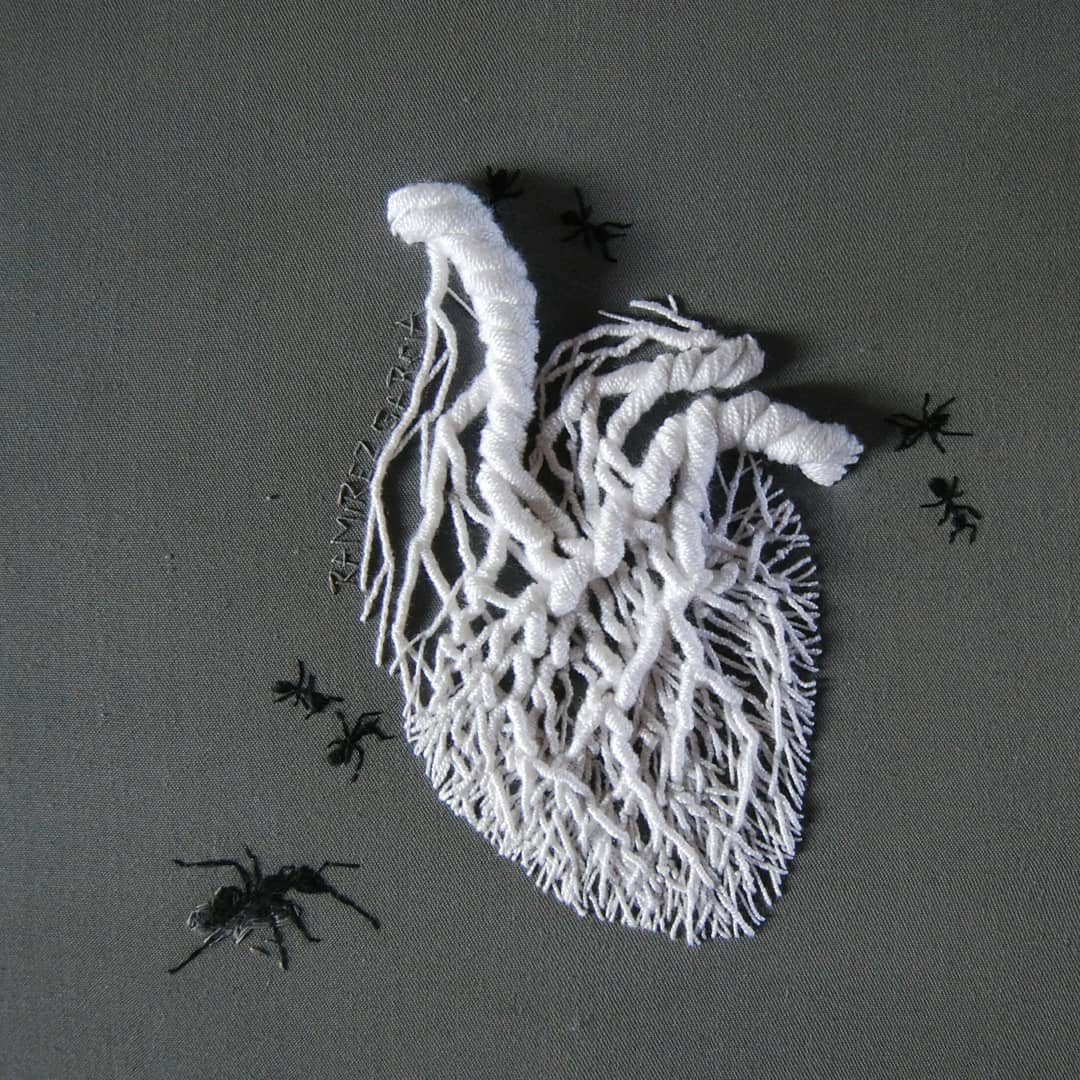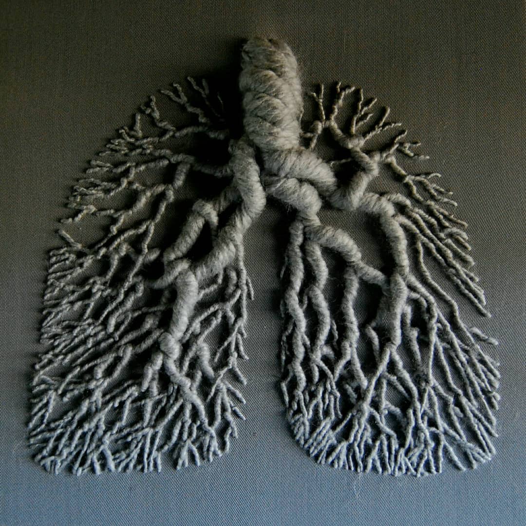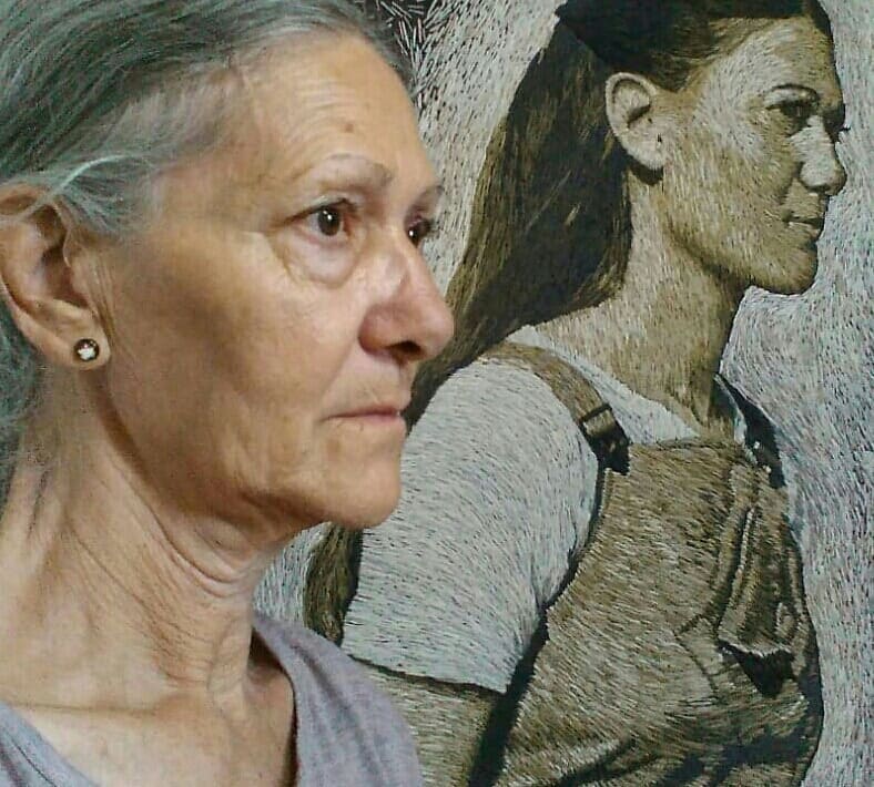 "Con Cecilia, que es muy generosa y siempre me inspiró seguridad y confianza, se me abrió una puerta enorme a la creación: la posibilidad, inexistente hasta ese momento para mí, de utilizar la costura, el tejido y otras técnicas, herramientas y materiales textiles para hacer una obra de arte. Me encantó y me permití disfrutarlo. Lo primero que hice fue un tocado para la Fiesta del Sol para el personaje de la Pachamama, en la edición 2014. Utilicé tela de tapicería con la que hice hojas que fue desflecando y deshilachando hasta convertir en plumas. Después de eso me animé a bordar mis primeros cuadros, aplicando los puntos básicos que me había enseñado mi mamá, pero también lo que aprendí en la facultad, lo que veía en Internet y lo que me fue transmitiendo solidariamente un grupo de tejedoras de distintas partes del mundo con quienes hemos hecho un entramado para compartir conocimientos tradicionales pero también para permitirse innovar. Muchas de ellas mexicanas, pero también rusas, japonesas y europeas se han interesado por los puntos de algunas de mis obras. Es un constante intercambio que enriquece", cuenta la artista que no sólo ha experimentado puntos con hilos de coser e hilos de bordar y ahora está dando los primeros pasos con yute, sino que se ha permitido volcar en la tela dibujos abstractos, curvas y líneas, elementos de la naturaleza significativos para su vida, rostros y retratos realistas (especialmente de mujeres), también escenas contadas en primera persona, entre otras temáticas. Su última incursión han sido los órganos vitales para el cuerpo humano, quizás sin saberlo, como homenaje a su mamá, su gran mentora, que falleció en mayo pasado, pero quien sigue inspirándola para compartir eso que tan bien sabe hacer.