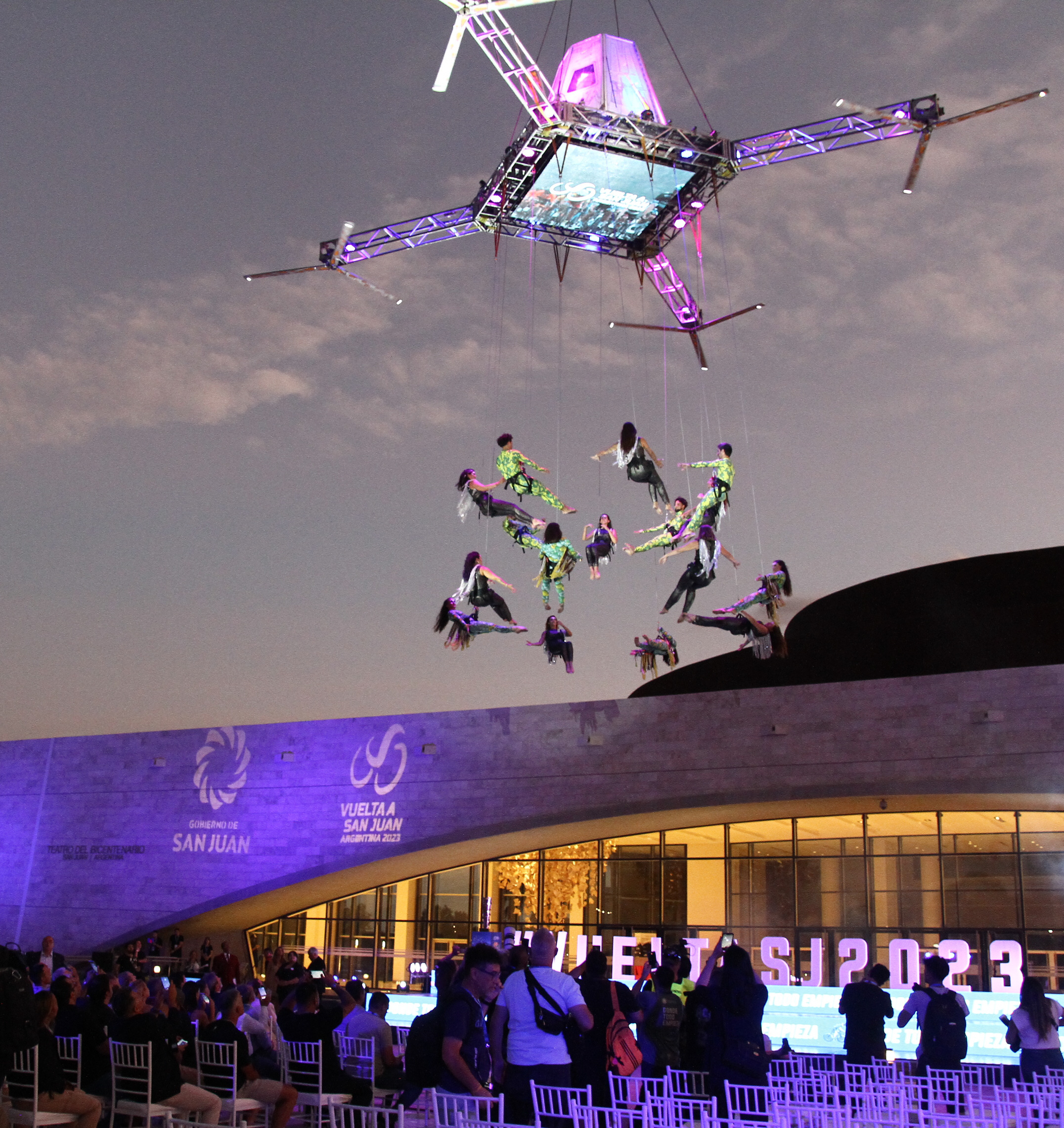 Un espectáculo de luces, manejados con drones, con una cuidada puesta en escena, cerró una presentación acorde al nivel mundial de las figuras del pelotón que desde esta tarde mantendrán en vilo la atención de San Juan, Argentina, y el mundo.