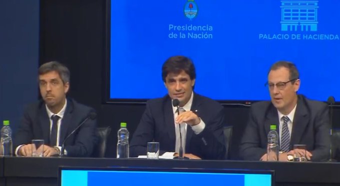 El jefe de Hacienda presentó inmediatamente después una serie de objetivos para enfrentar el salto cambiario, que llevó al valor del dólar a la zona de 60 pesos, y contener la volatilidad financiera que hundió al precio de los bonos soberanos y llevó al índice de Riesgo país a niveles máximos en una década.