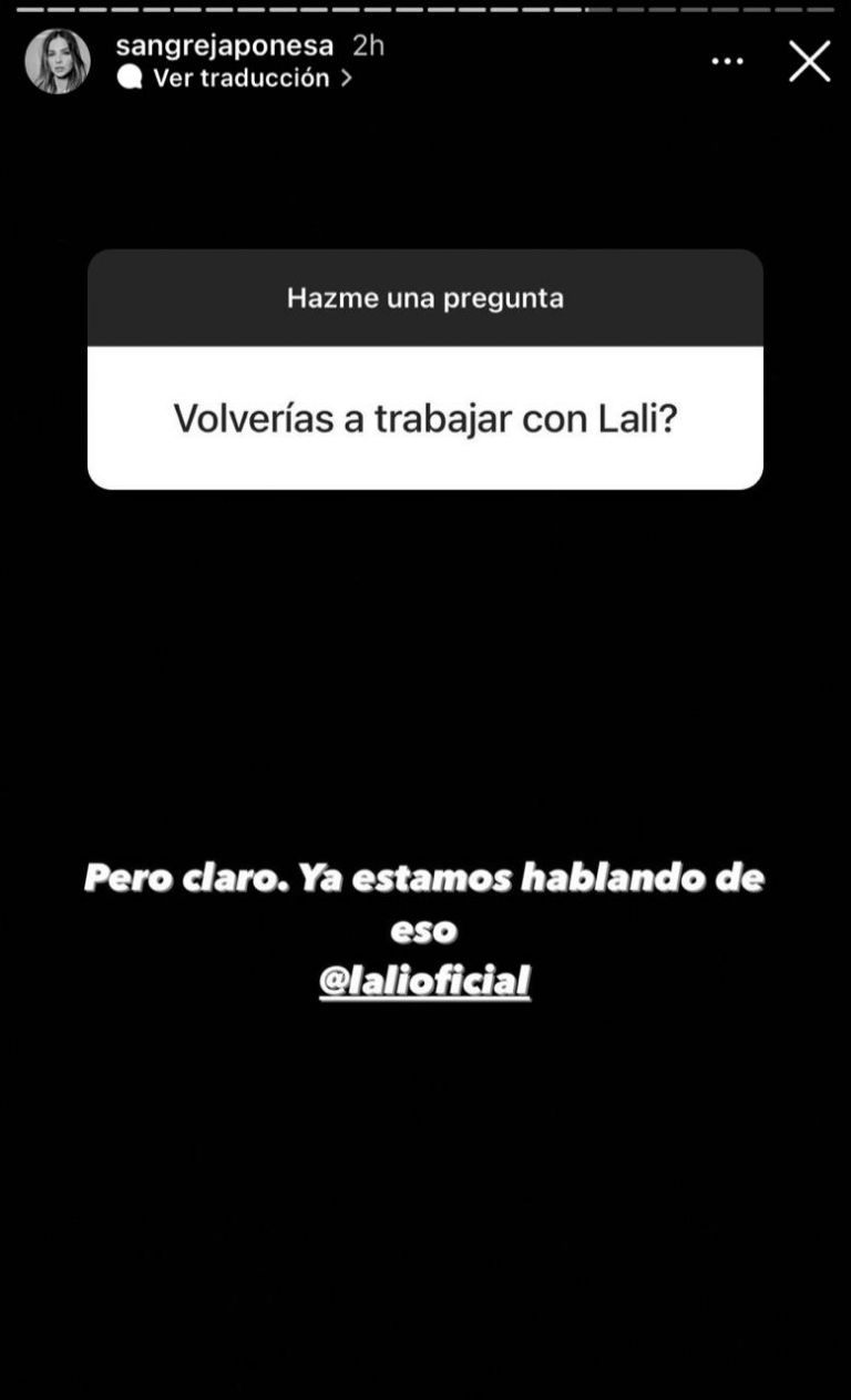 “¿Volverías a trabajar con Lali?”, le preguntaron a lo que La China respondió: “Pero claro, ya estamos hablando de eso”, sostuvo etiquetando a Espósito.