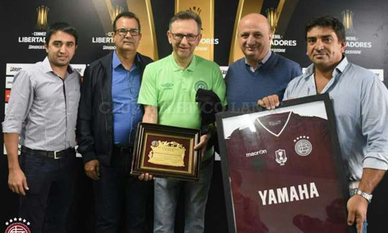 Emotivo. En la previa del encuentro, dirigentes de Lanús le entregaron a sus pares brasileño, la camiseta granate que se diseñó en homenaje al “Chapé”.