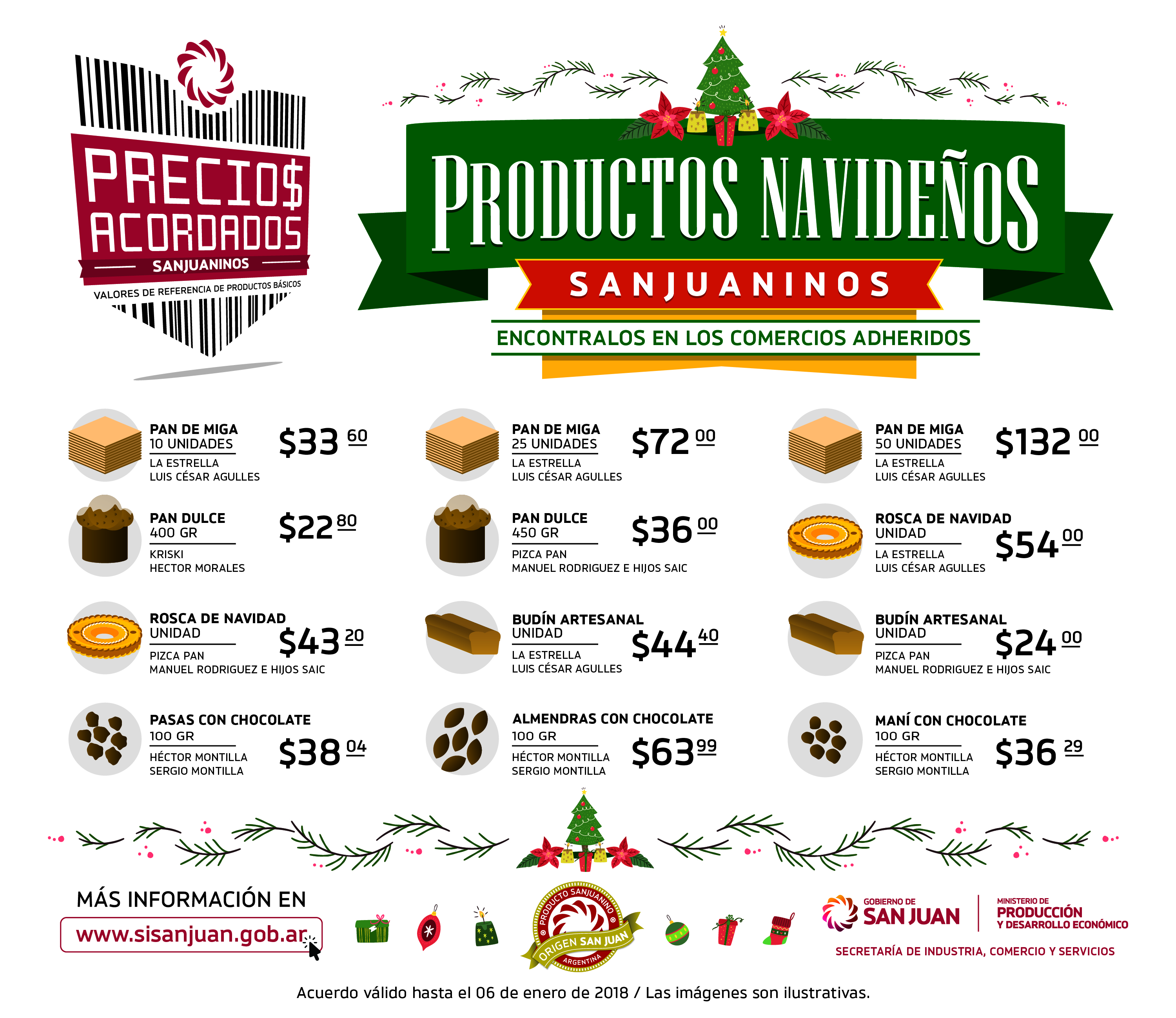 A continuación se detallan los productos navideños incorporados a la canasta con sus respectivos precios: