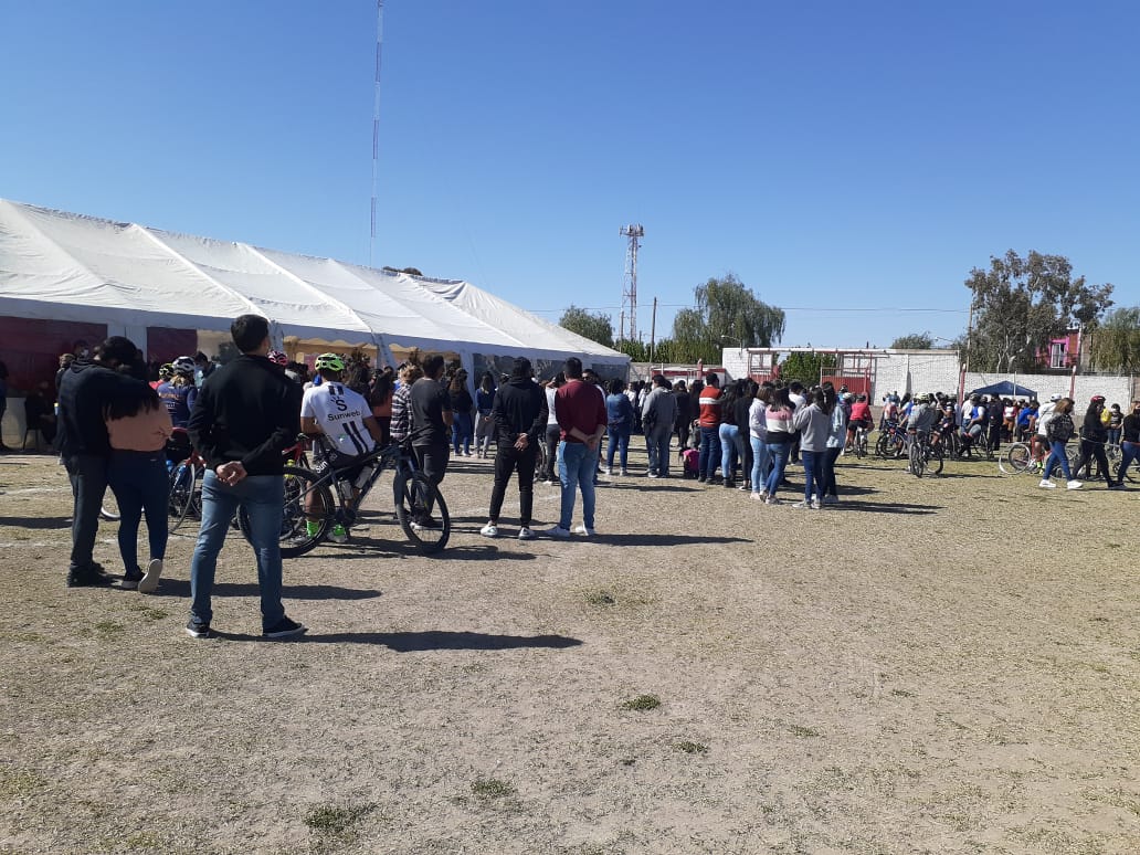 Al menos una cuadra es la fila que han realizado amigos, conocidos, ciclistas y familiares en el exterior de la cancha del Club Sportivo Rivadavia y varias colas antes de pasar a la carpa donde está el féretro del deportista sanjuanino, quien falleció luego de protagonizar una caída durante una carrera en Mendoza.