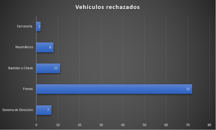 Aunque no supera el 2% de los vehículos verificados aquellos que no consiguen ni la aprobación condicional, esto también sucede. Aquí el principal responsable del ‘aplazo’ es el sistema de frenos, con el 72 por ciento de los casos. Deterioros severos en el bastidor, chasis (11%), neumáticos (8%), dirección (7%) y carrocería (2%), han sido también motivo de la situación.