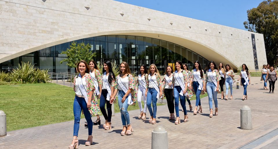 Acompañadas por las actuales Reina y Virreina del Sol, Jocelyn Mauro y Florencia Valdez, las 19 candidatas a la corona de la Fiesta Nacional del Sol 2019, recorrieron el Teatro del Bicentenario.