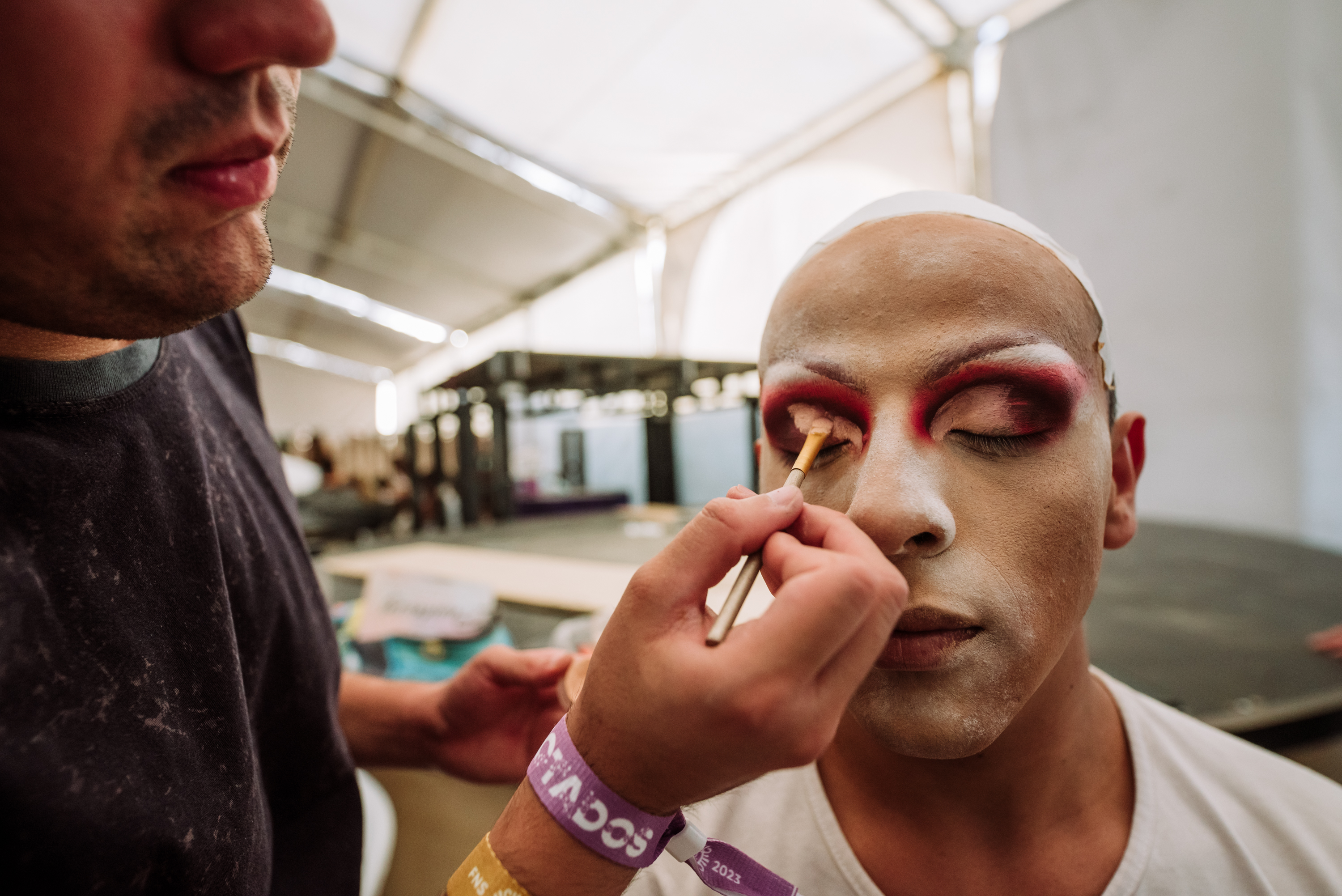 Con sesiones de maquillaje que tuvieron como epicentro el Centro Cívico y después el resto de los preparativos en el Predio Ferial Costanera, así comenzaron a prepararse los 330 artistas que protagonizarán el Espectaculo final de la Fiesta Nacional del Sol 2023. El backstage de la previa en 30 imágenes.