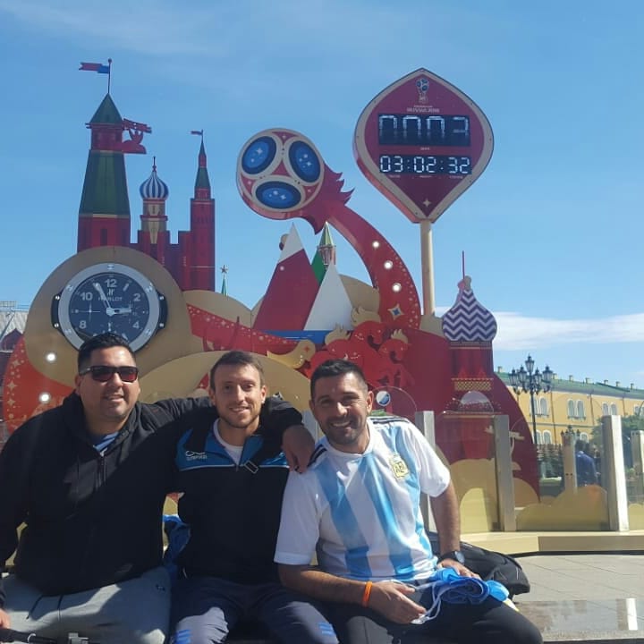 Con su bandera con el nombre de la provincia bien grande, el sanjuanino duerme poco para disfrutar de cada rincón de Rusia y seguir a la selección en este Mundial.