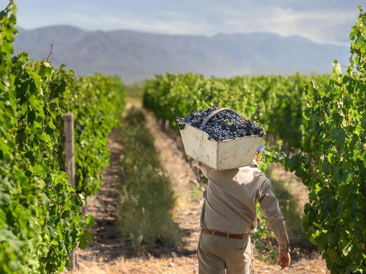 De esta manera y generalmente de a dos vendimiadores van ejecutando la tarea; uno corta el racimo, habitualmente es una mujer; otro sostiene con fuerza el recipiente, que puede llegar a pesar hasta 25 kilos.