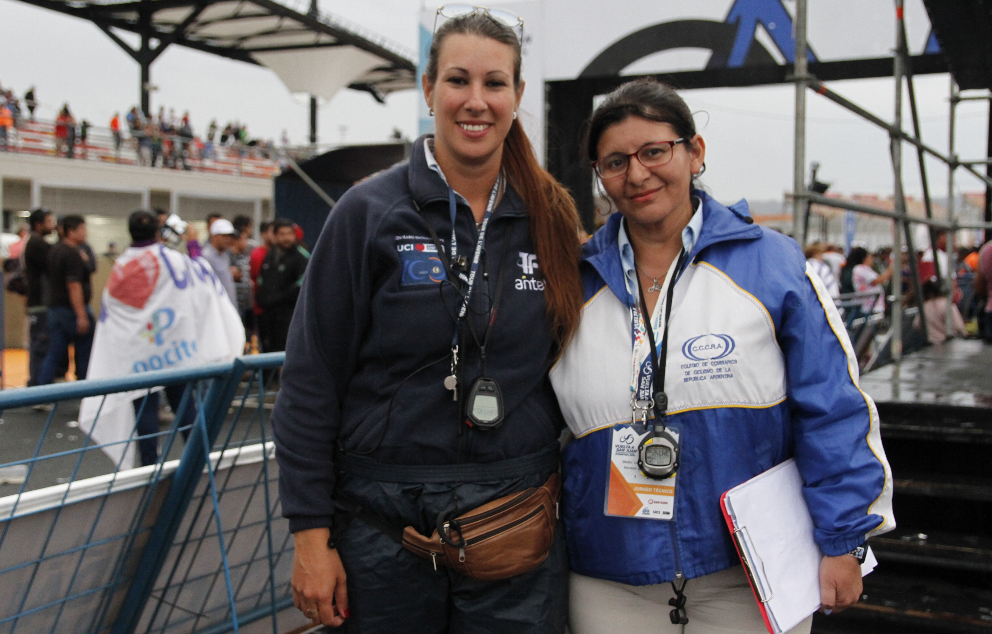 Son dos mujeres integrando el Cuerpo de Comisarios que rigen la Vuelta Internacional a San Juan. Se trata de María Eugenia Silva y Eliana Moreira, quienes por primera vez están dirigiendo la competencia sanjuanina de la que se mostraron sorprendidas por el nivel, por la organización y por el público.