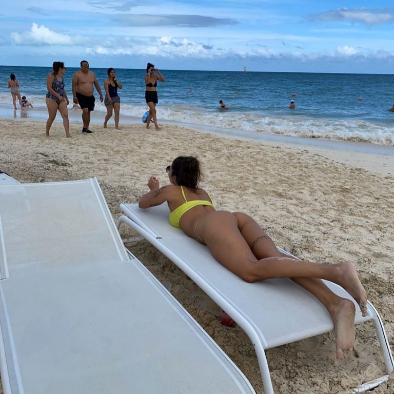 “Buenas”, escribió en su cuenta de Instagram desde la playa, donde le sacaron varias fotos mientras se recostaba en una reposera.