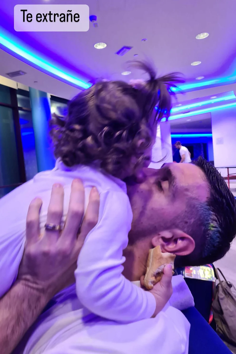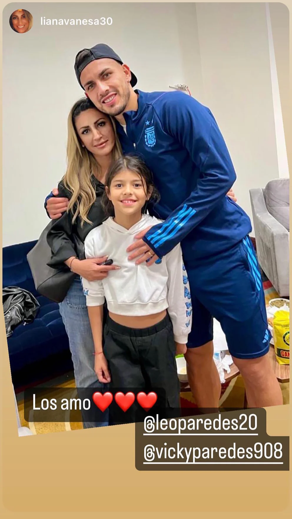 Por su parte, el otro que mostró la intimidad de la visita de su familia fue uno de los grandes protagonistas de la noche del viernes en Doha. Dibu, quién atajó los dos primeros penales de la definición, subió una foto en la que se lo puede ver haciéndole upa a su pequeña hija. En la historia que subió a su cuenta de Instagram, acompañó la imagen con un texto que dice: “Te extrañé”.