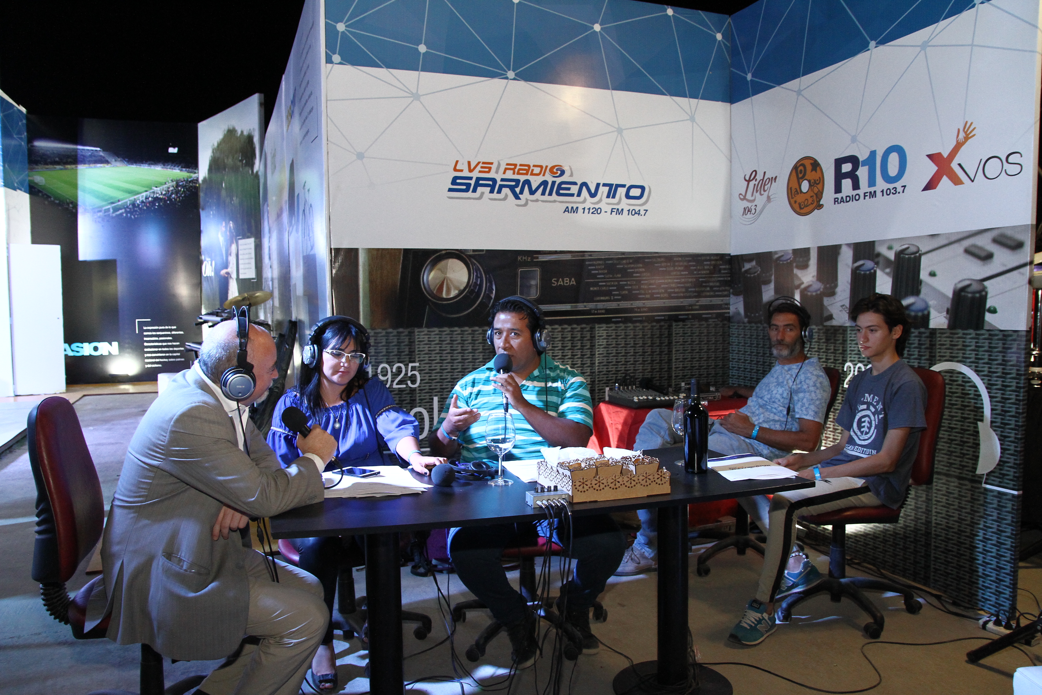 Radio Sarmiento también es protagonista de la Fiesta del Sol. Con una transmisión en vivo, que puede escucharse por el 104.7 del dial o por la página www.lv5sarmiento.com.ar, el stand (ubicado junto al de DIARIO DE CUYO) también se volvió una de las paradas obligadas dentro del complejo chimbero. La conducción de este espacio está a cargo de un equipo periodístico integrado por María Silvia Martín, Juan Pereyra, Sonia Arias y Leonardo Polegritti, con la asistencia técnica de Luis Urbano. Esta emisora, además de tener este stand en el que se puede participar de diferentes sorteos, transmite en vivo desde el escenario mayor de la Fiesta para que la audiencia pueda disfrutar de los espectáculos principales de cada noche.