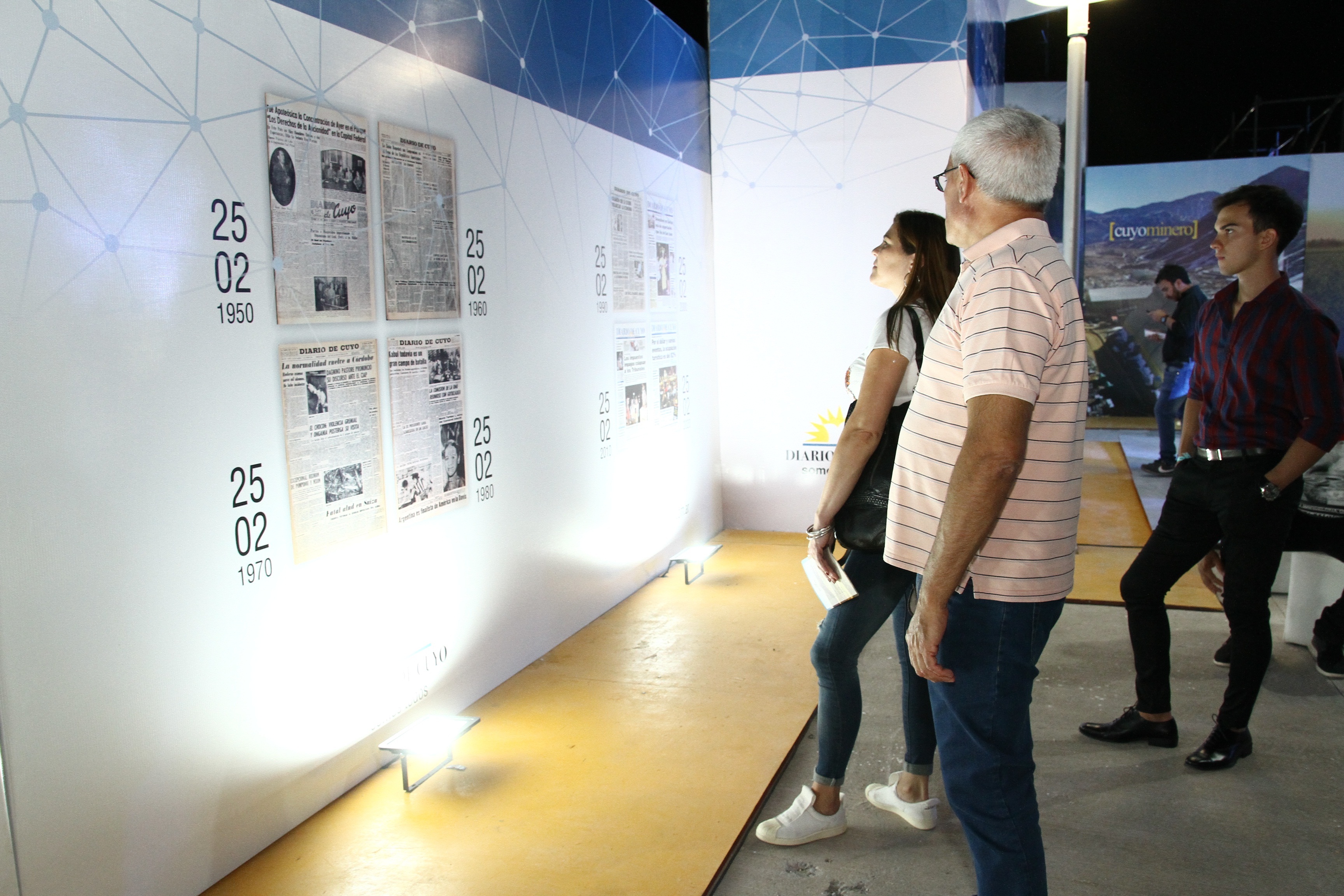 Una pantalla gigante que muestra los inicios de DIARIO DE CUYO se volvió un imán para el público que visitó el Complejo Costanera Ferial San Juan, en Chimbas, durante las primeras noches del festejo. Es que, a pocos metros de una de las entradas principales, el stand de este medio llamó la atención al mostrar, en sintonía con la temática de la Fiesta Nacional del Sol 2020, la evolución de las noticias. Así fue que cientos de personas se detuvieron para mirar las tapas de este diario, que fueron publicadas en las diferentes décadas. Otra cosa que llamó la atención de este stand fueron los juegos y las entrevistas que se realizaron en vivo.