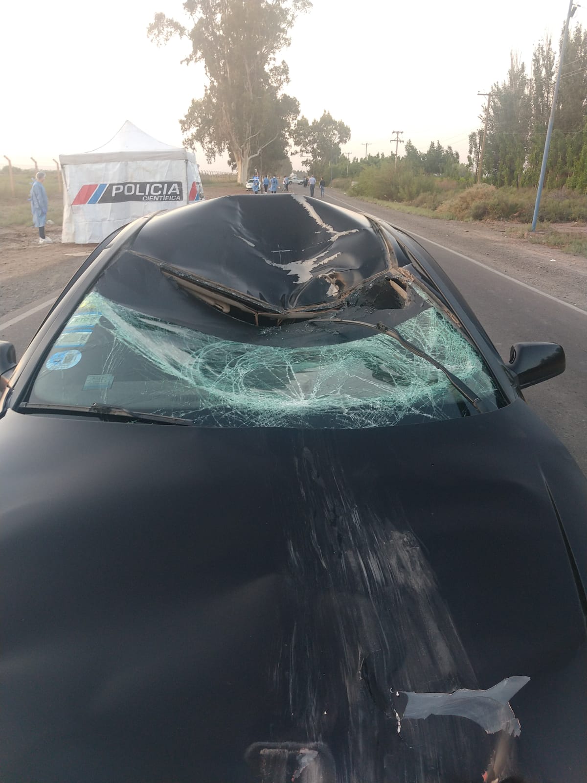 Poco antes de llegar a Ruta 20, chocó de atrás a un hombre que circulaba en bicicleta, quien producto del impacto, golpeó violentamente con la parte posterior de su cabeza y cuerpo en el parabrisas y un sector del techo del Chevrolet, para luego ser despedido y caer al costado de la calle falleciendo instantaneamente